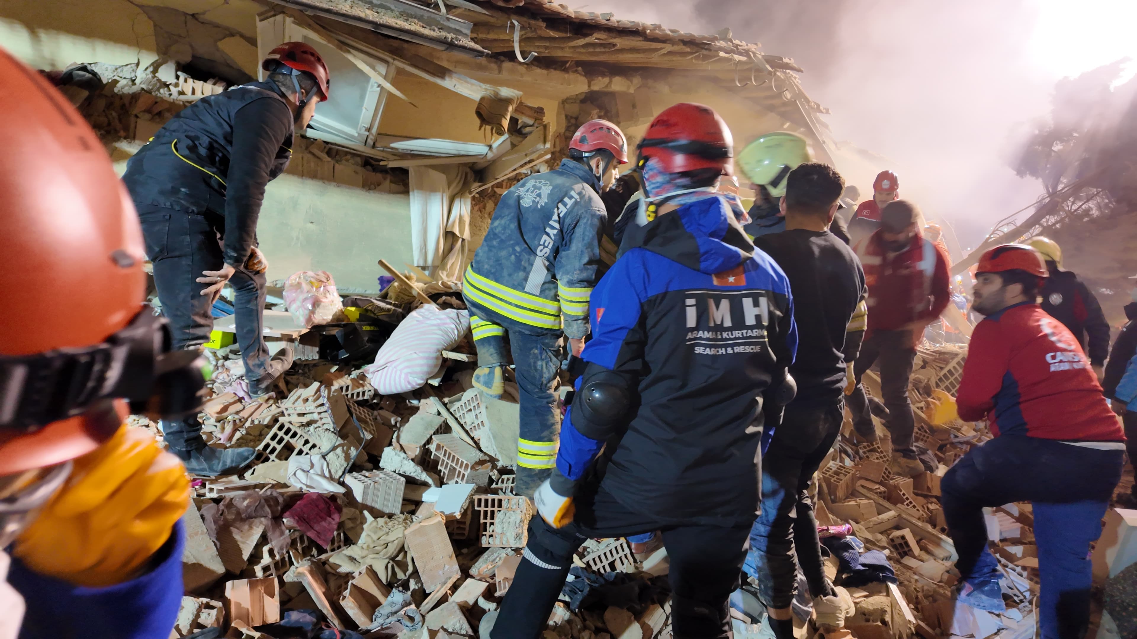 İnsan ve Medeniyet Hareketi (İMH) Konya Derneği Arama Kurtarma Birimi de diğer kamu kurum ve kuruluşlarıyla koordineli bir şekilde özel ekipman ve personeliyle enkaz altında kalanlara ulaşmak için gece boyunca çalıştı.