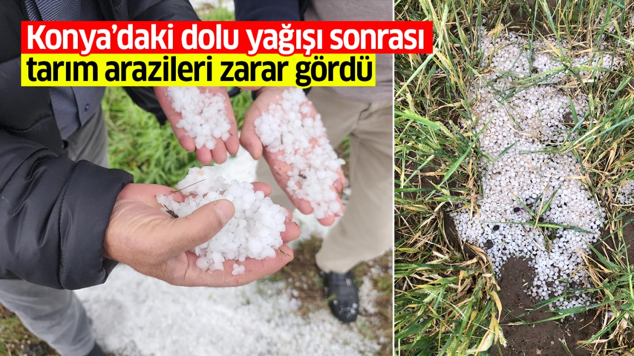 Konya'nın Kulu ilçesinde etkili olan dolu, ekili tarım arazilerinde zarara neden oldu.