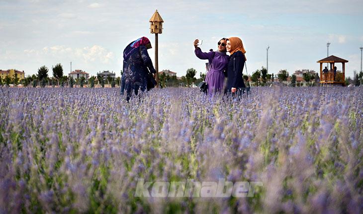 Merkez Karatay ilçesinde belediye tarafından Saraçoğlu Mahallesi'nde lavanta dikilen 90 bin metrekare alan, fotoğraf tutkunları için doğal stüdyo oldu.