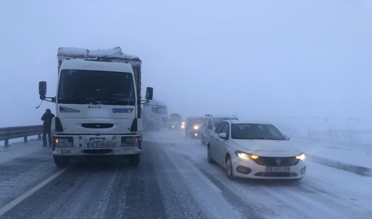 Kara yolları ekipleri, Konya-Ankara ile Konya-Adana kara yolunun trafiğe açılması için yol tuzlama ve kar küreme çalışmalarını sürdürürken, kontrol noktalarındaki polis ekipleri araçların geçişine izin vermiyor.