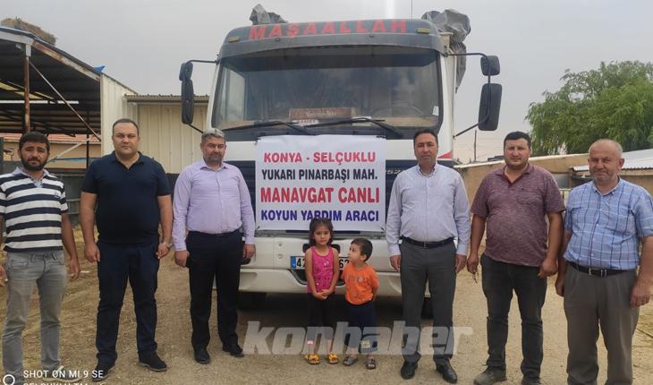 Yukarı Pınarbaşı Mahalle Muhtarı Mustafa Yavuz Er “ Selçuklu Yukarıpınar Mahallesi olarak Manavgat’ta son zamanlarda çıkan orman yangınları sonrası hayvanları telef olan hayvan sahiplerine bir nebze faydamız olması için 50 adet küçükbaş hayvanı Güzelyalı köyümüze teslim etmek için yola çıkarttık. Allah devletimizden ve milletimizden razı olsun bir daha bizlere böyle afetler yaşatmasın” dedi.