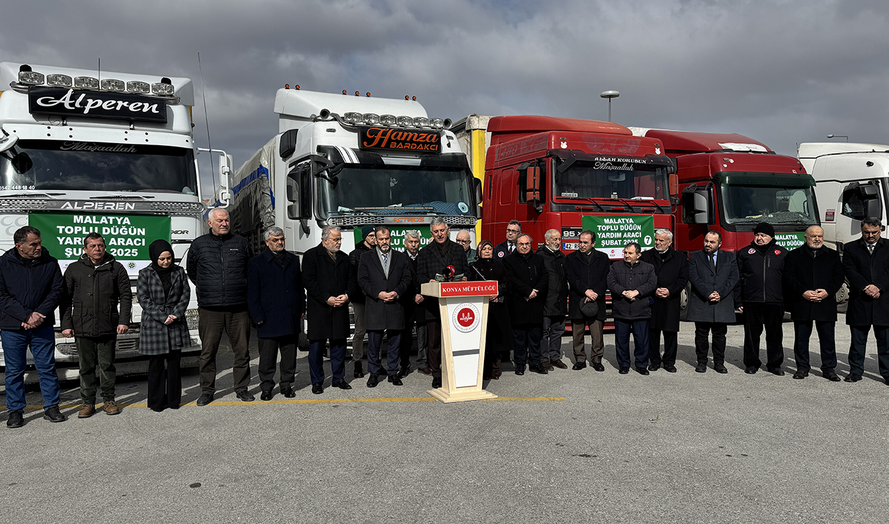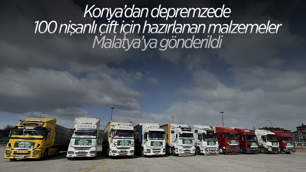 Malatya'da ihtiyaç sahibi 100 nişanlı çift için Konya'dan temin edilen kıyafet, halı, ev tekstili, züccaciye ve kişisel bakım ürünlerinin bulunduğu tırlar yola çıktı.