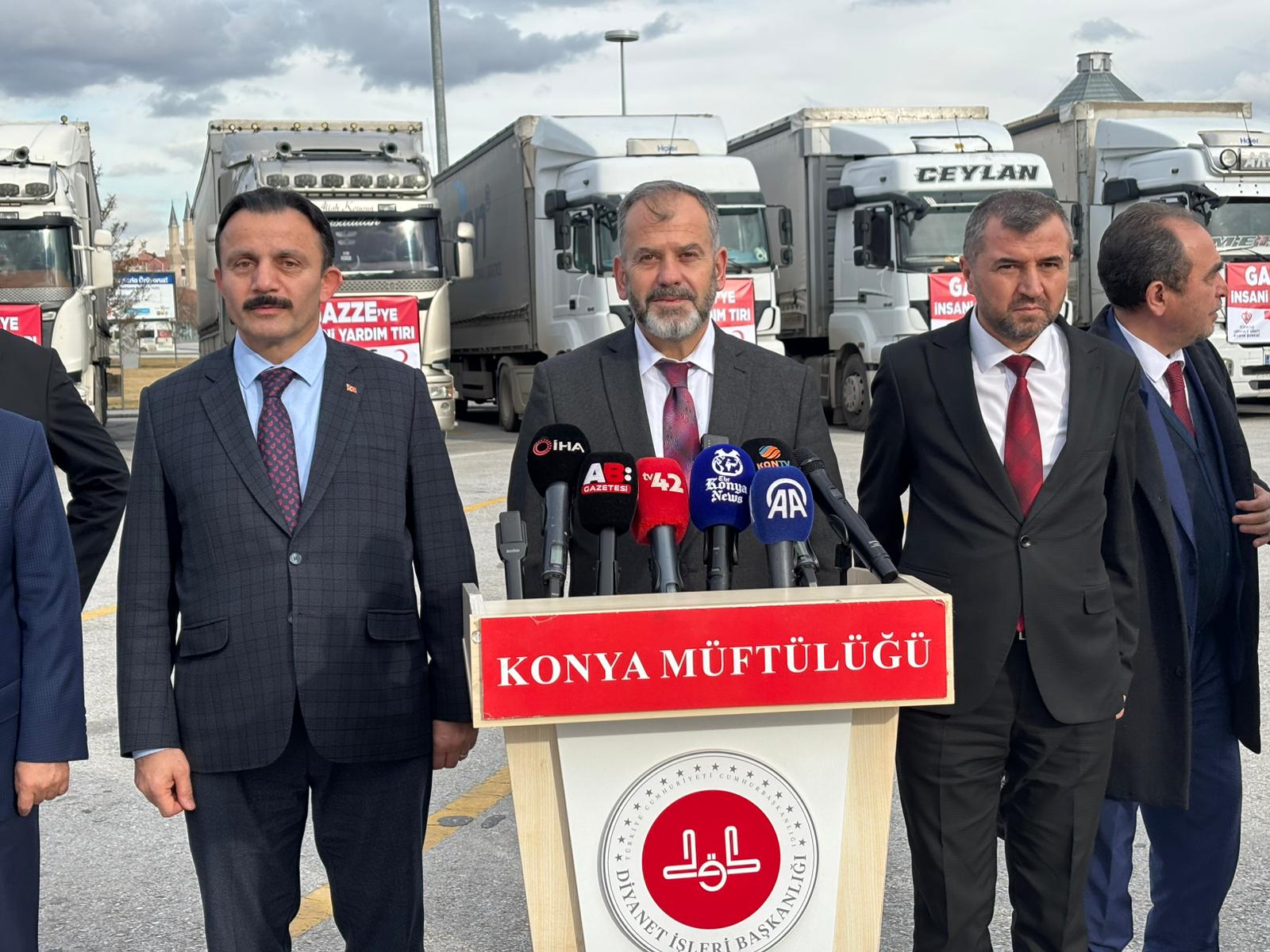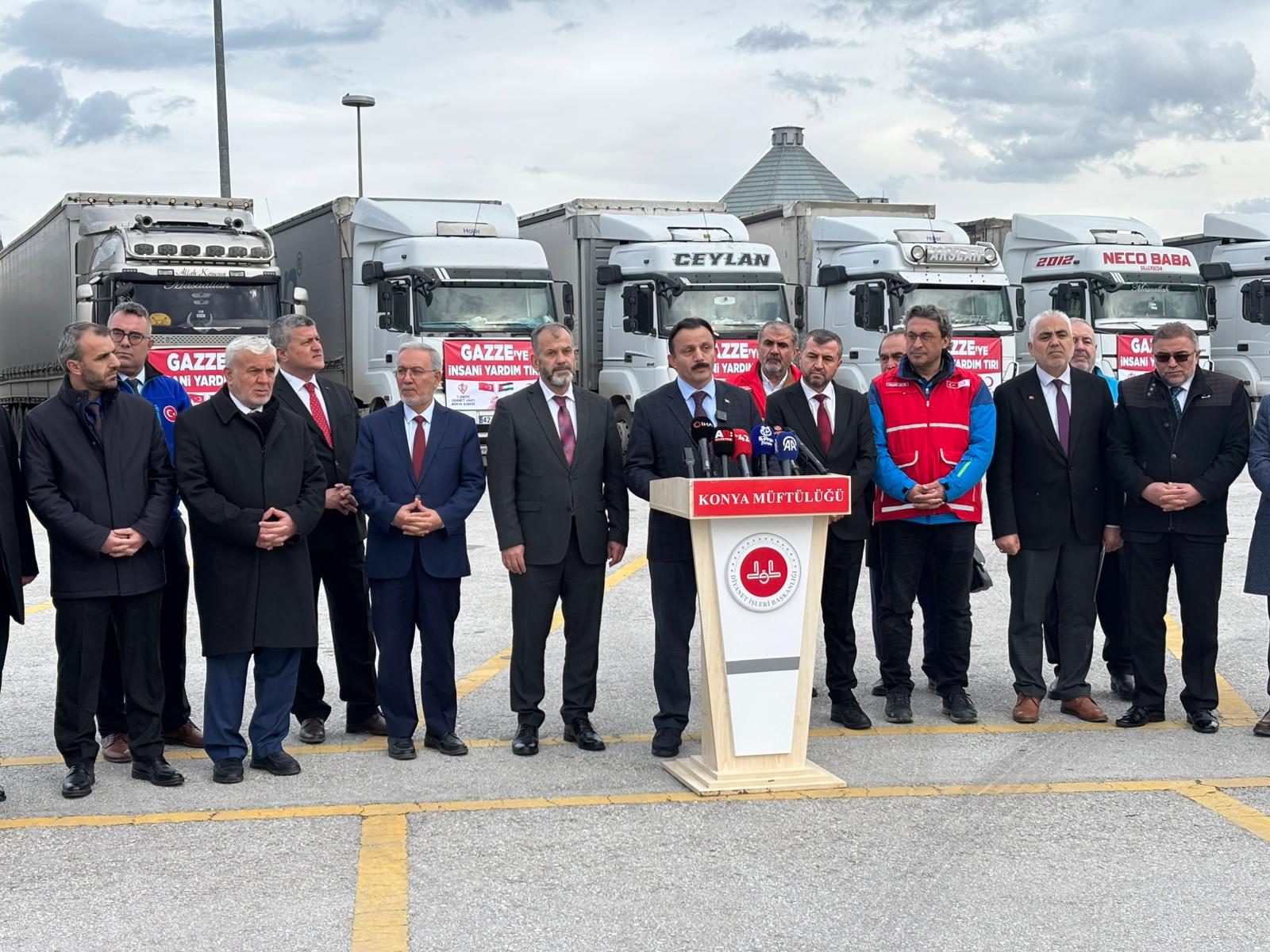 Konya’dan Gazze’ye yardım eli uzatılmaya devam ediyor. Bu kapsamda Konya İl Müftülüğü ve Türkiye Diyanet Vakfı Konya Şubesi tarafından hayırseverlerin destekleriyle hazırlanan 15 tır insani yardım malzemesi dualarla uğurlandı.