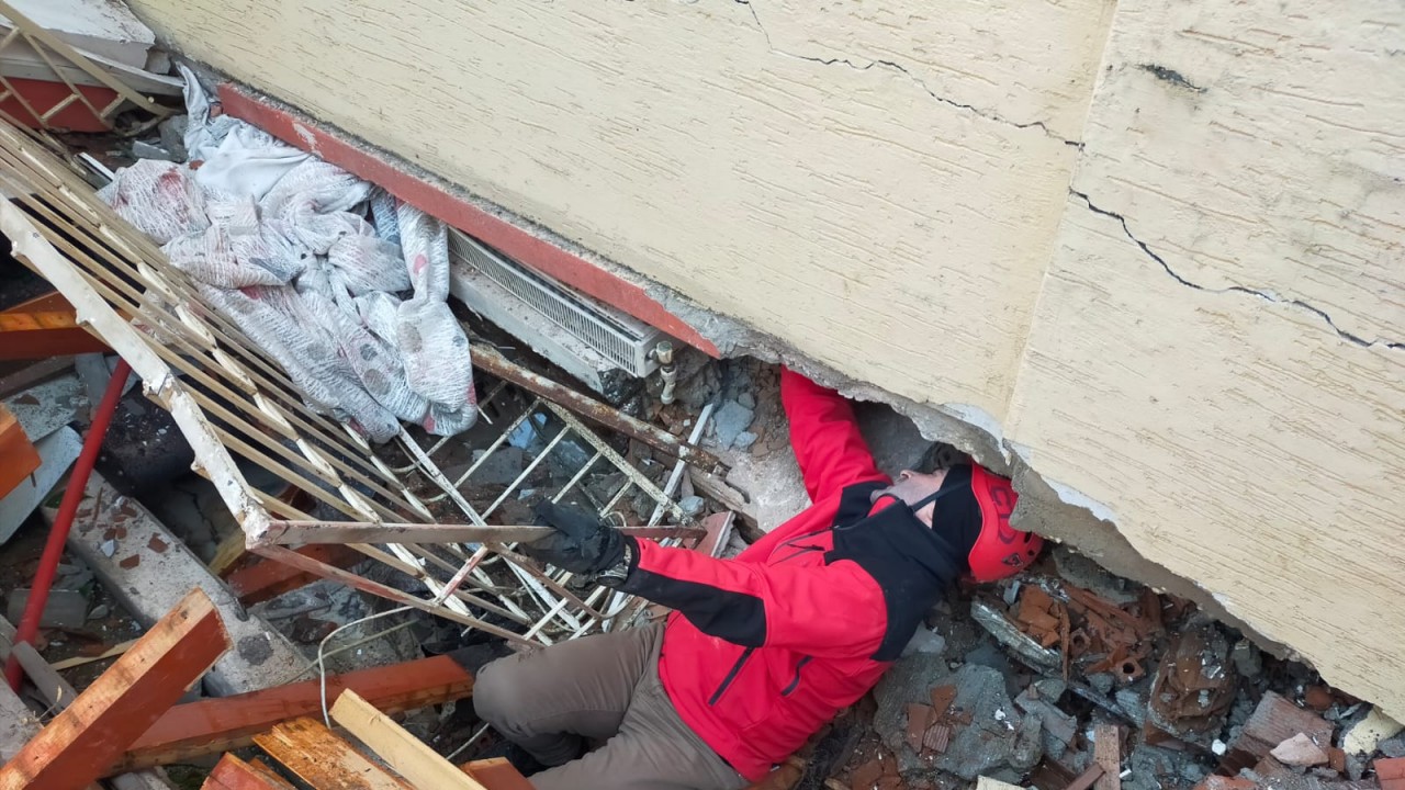 Enkaz çevresinde yakınlarından mutlu haber almayı bekleyenlerin yönlendirmesi sonucunda ekipler, binanın ikinci katında çöken duvar ile tavan arasında sıkışan 20 yaşındaki tıp fakültesi öğrencisi Kerem Çetin'e ulaştı.