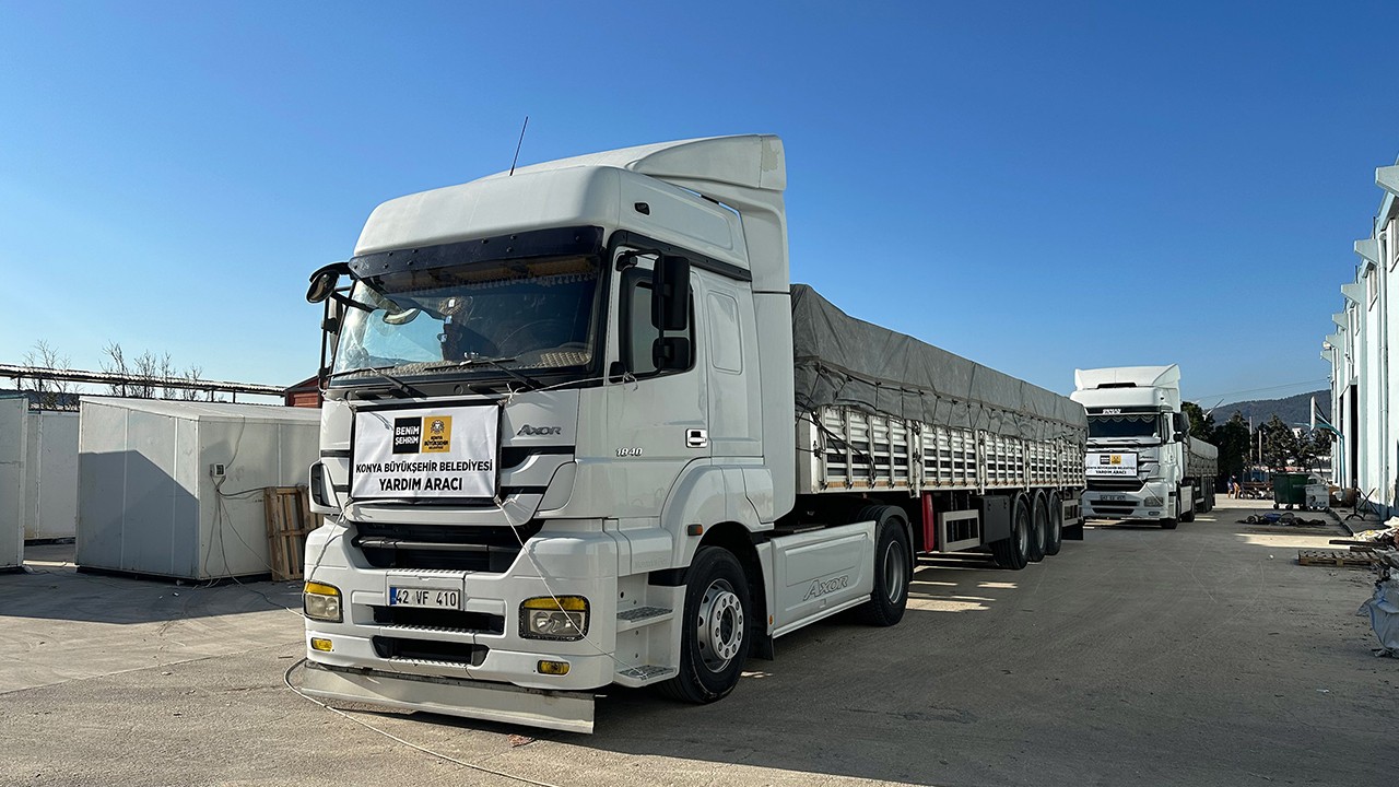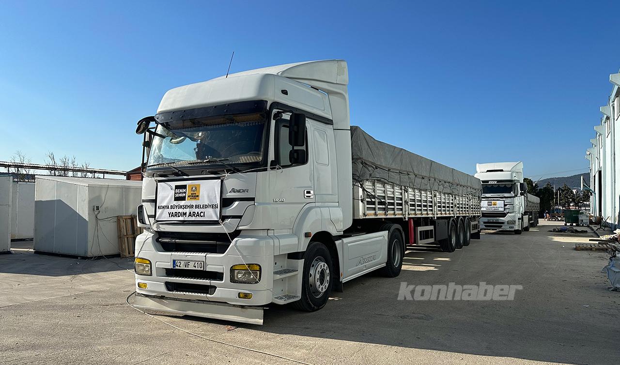 Deprem bölgesine gitmeye başlayan 50 TIR’ın 43’ünü Konya Büyükşehir Belediyesi, 5’ini Konya Ticaret Borsası, ikisini hayırseverler karşılıyor.