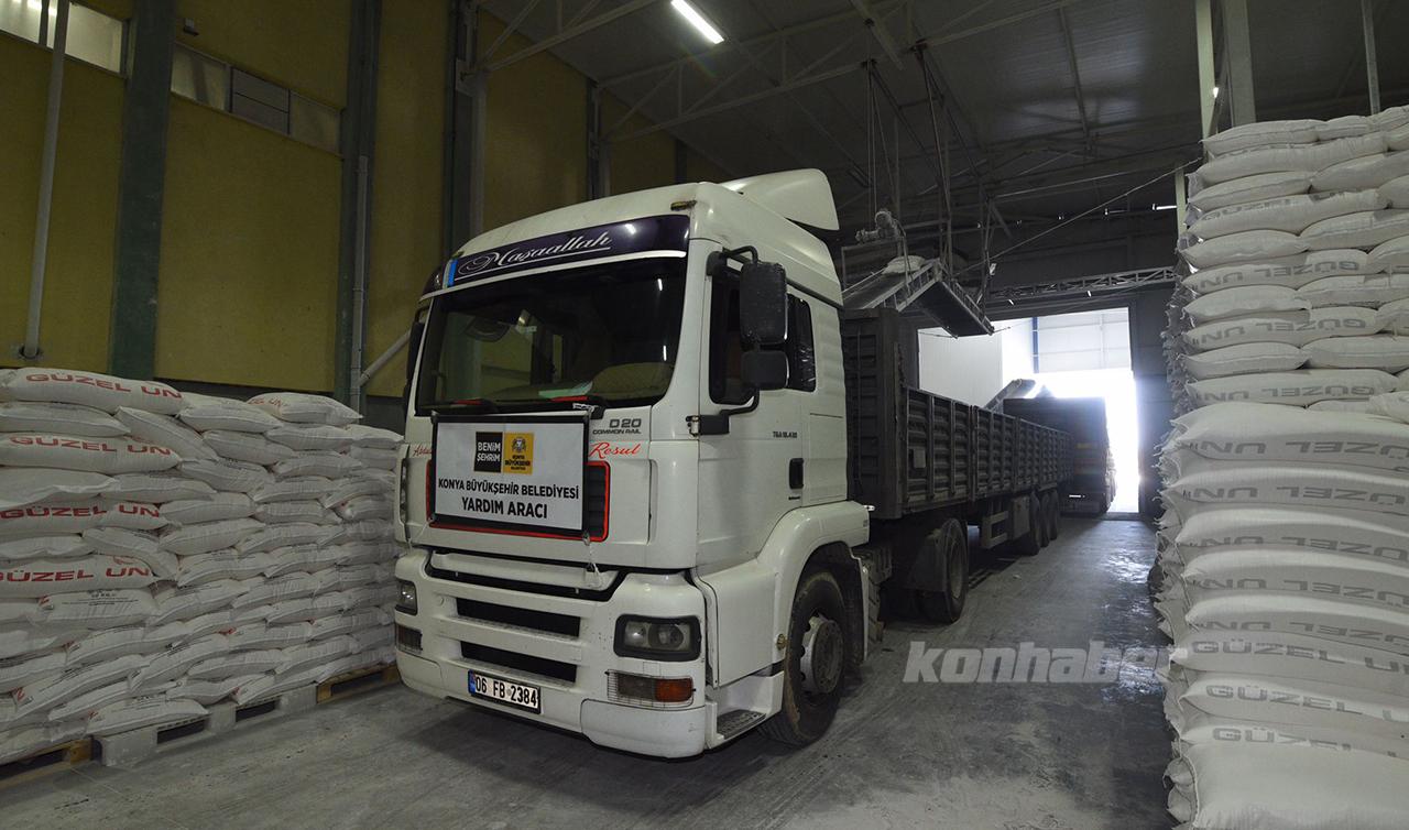 Konya’dan deprem bölgesine yapılacak un desteğinin 43 TIR’ını Konya Büyükşehir Belediyesi, 5 TIR’ını Konya Ticaret Borsası, 2 TIR’ını ise hayırseverler karşılıyor.