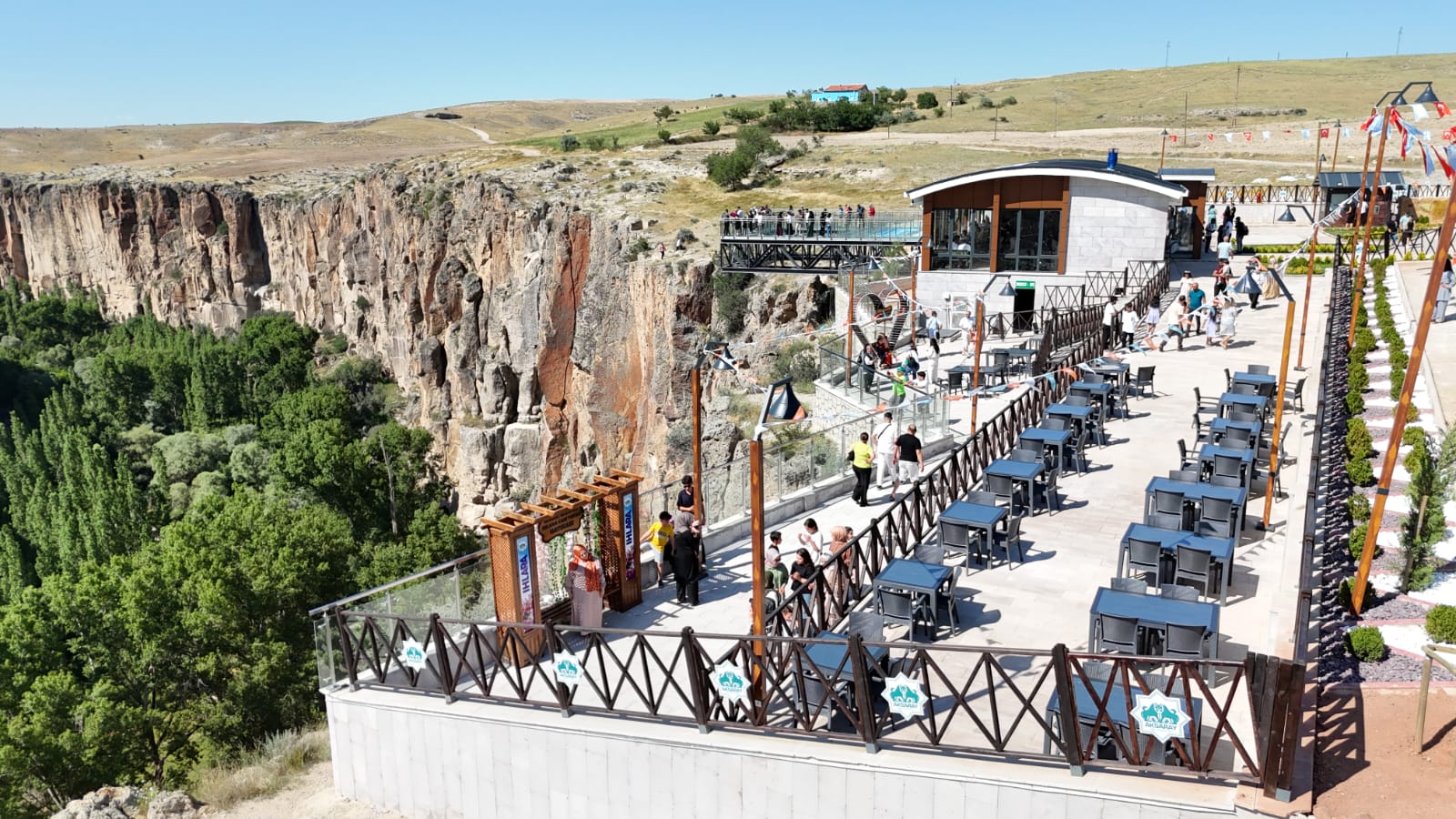 Ihlara Vadisi, 14 kilometrelik yürüyüş yolu ve 150 metre yükseklikte inşa edilen 10 metrelik açık alana sahip cam terasıyla ziyaretçilerine eşsiz bir deneyim yaşatıyor. Tatilciler, hem vadinin doğal güzelliklerini hem de tarihi dokusunu bu özel terastan izleme fırsatı buluyor.(Yunus Köroğlu)