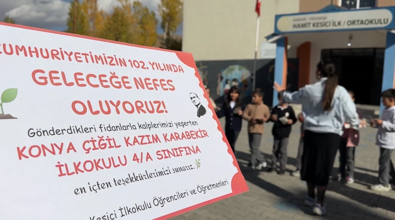 Cumhuriyetin 102. yıl dönümü nedeniyle Konya Çiğil Kazım Karabekir İlkokulu 4/A sınıfı öğrencilerince hazırlanan 30 fidan tohumu ve 102 meşe palamudu, Yüksekova Hamit Kesici İlkokulu 4/B sınıfı öğrencilerine ulaştırıldı. Okula ulaşan tohumlar, okul yönetimi ve öğretmenler öncülüğünde okul bahçesinde düzenlenen etkinlikle öğrencilere tanıtıldı. Öğrenciler, bilgilendirmenin ardından kendilerine verilen toprak dolu pet bardaklara tohumları yerleştirerek can suyunu verdi.