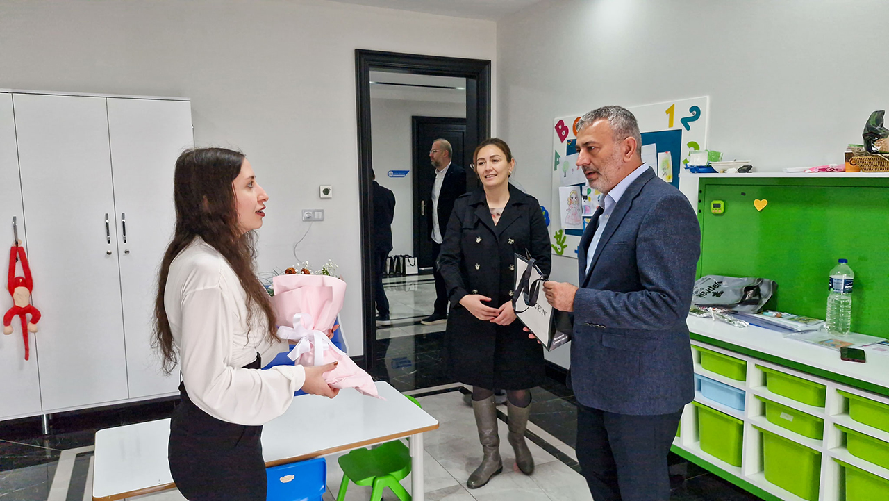 Özenle hazırlanan çiçekleri öğretmenlere takdim eden Munlafalıoğlu, “Öğretmenlerimize minnettarız. Onlarla birlikte daha mutlu ve daha güçlü yarınlara yürüyoruz. DOSD Meram’ın öğretmenleri, sadece bilgi aktaran değil; sabırla, şefkatle ve büyük bir adanmışlıkla çocukların gelişimine yön veren kahramanlardır. Özel eğitim, her çocuğun farklı gelişim ihtiyaçlarına göre şekillenen, yoğun emek isteyen bir alan. Öğretmenler yalnızca ders anlatmakla kalmıyor; öğrencilerin sosyal, duygusal ve fiziksel gelişimlerine de rehberlik ediyor. Bu nedenle özel eğitimde görev yapan öğretmenlerin fedakârlığı, çocukların hayatlarına dokunan en önemli unsurlardan biri olarak öne çıkıyor.” diyerek özel eğitim alanında çalışan tüm eğitmenlere teşekkür etti.
