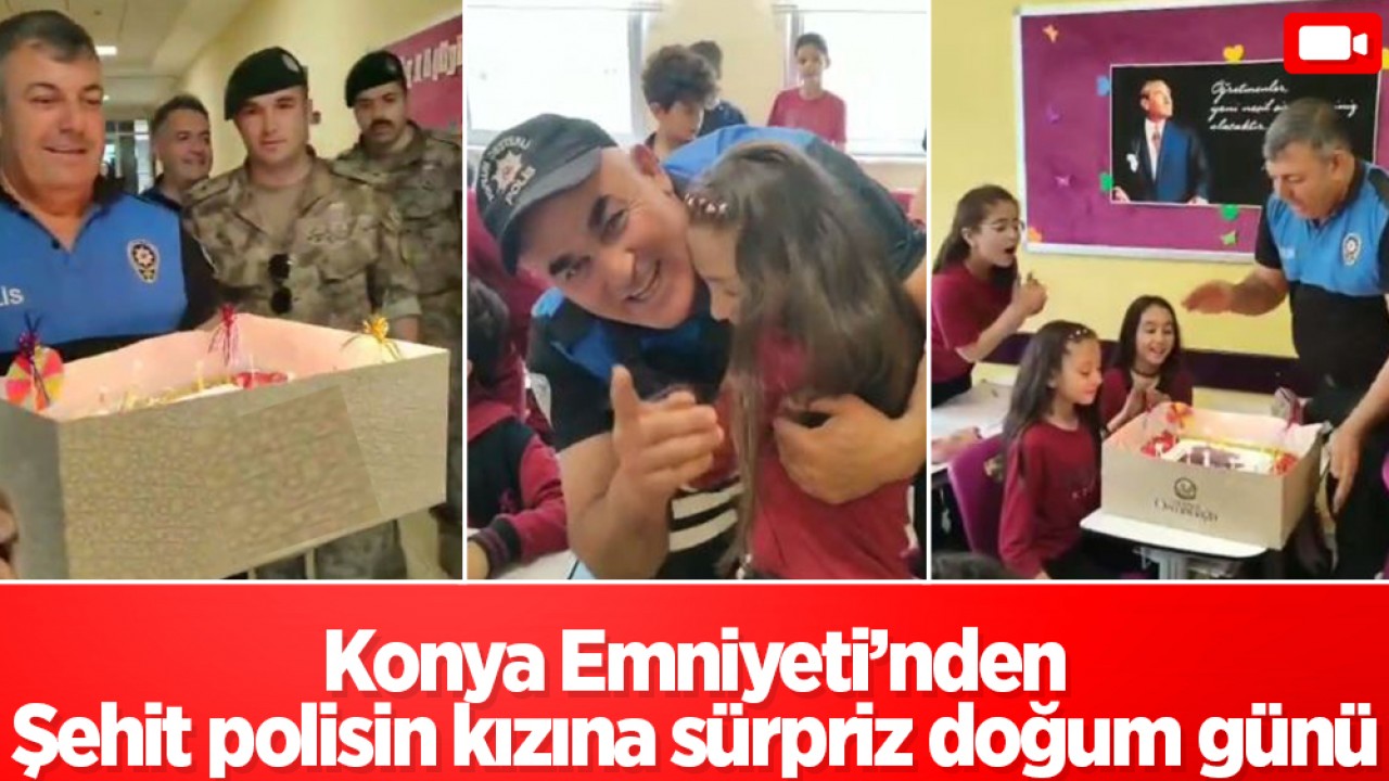 Konya Emniyeti, Şehit polisin kızı Fatma Sena’ya okulunda anlamlı bir sürpriz yaparak, doğum gününü kutladı. İşte o samimi anlar..(Harun Susal)