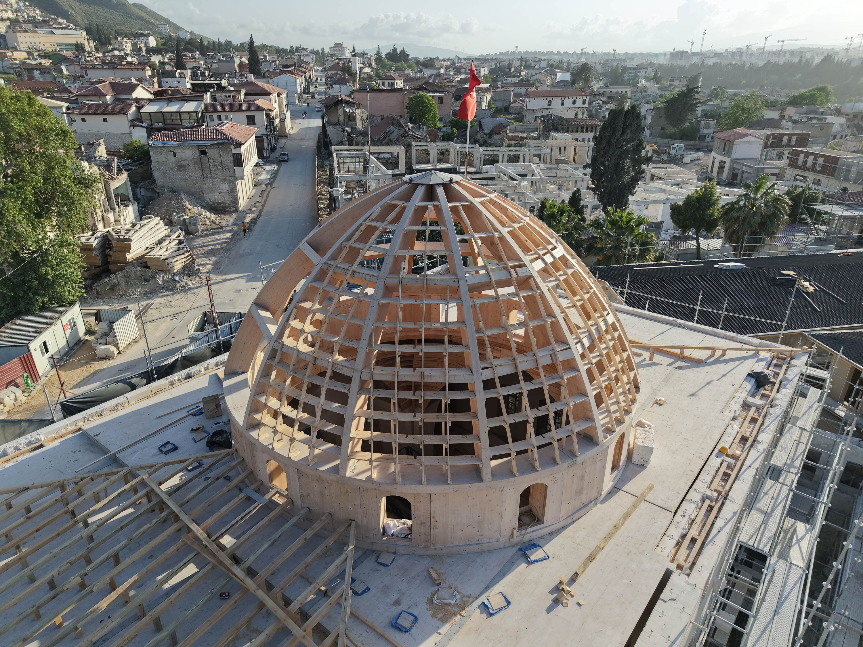 Konya Büyükşehir Belediyesi, 6 Şubat 2023’te meydana gelen Kahramanmaraş merkezli depremlerde yıkılan Hatay’daki Habib-i Neccar Camii’nin restorasyonundaki çalışmaları hızla sürdürüyor.