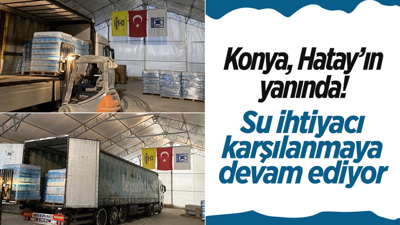 Kahramanmaraş merkezli 6 Şubat'ta meydana gelen depremlerden etkilenen Hatay’da yaraları sarmaya devam eden Konya, şu ana kadar 48 TIR ile 1.070.000 adet paketli içme suyunu Hatay’a ulaştırdı.
