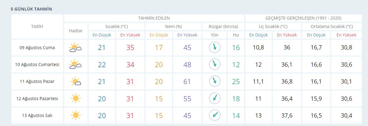 KONYA İÇİN 5 GÜNLÜK HAVA TAHMİN RAPORU