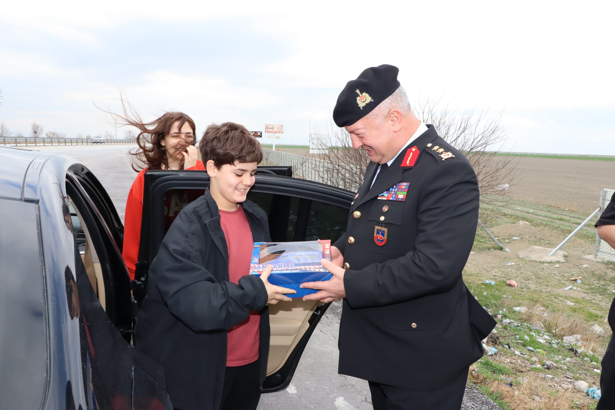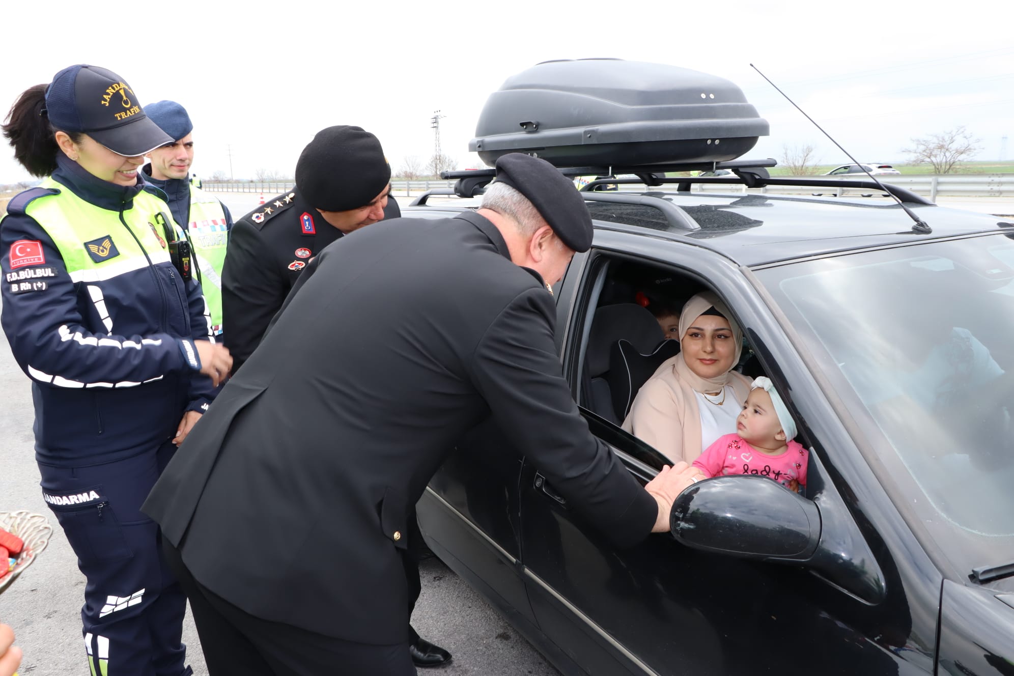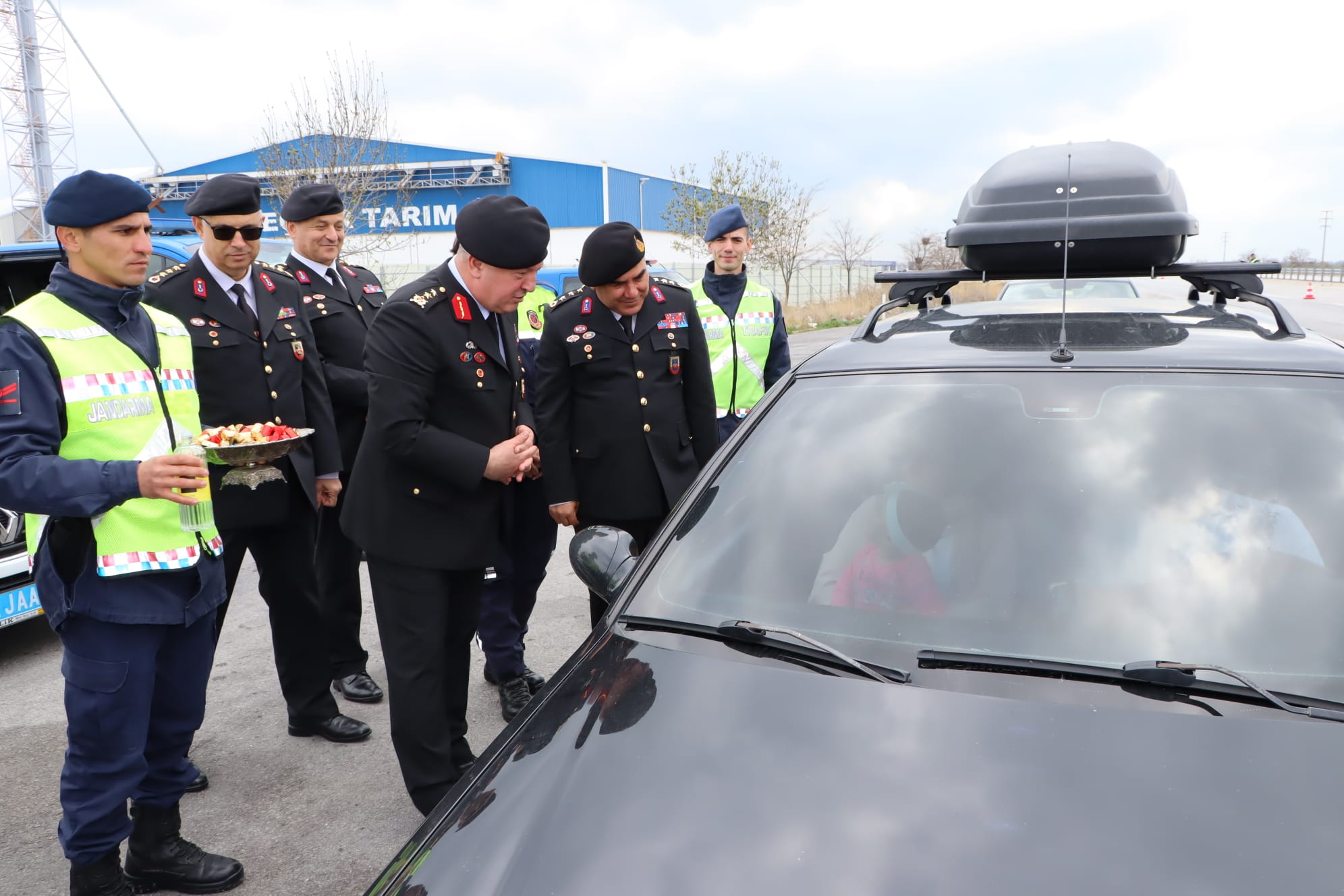 Konya İl Jandarma Komutanı Cemil Tümgeneral Lütfi Özkul ramazan bayramı tedbirleri kapsamında Konyalı vatandaşları uyararak, ikramda bulundu.