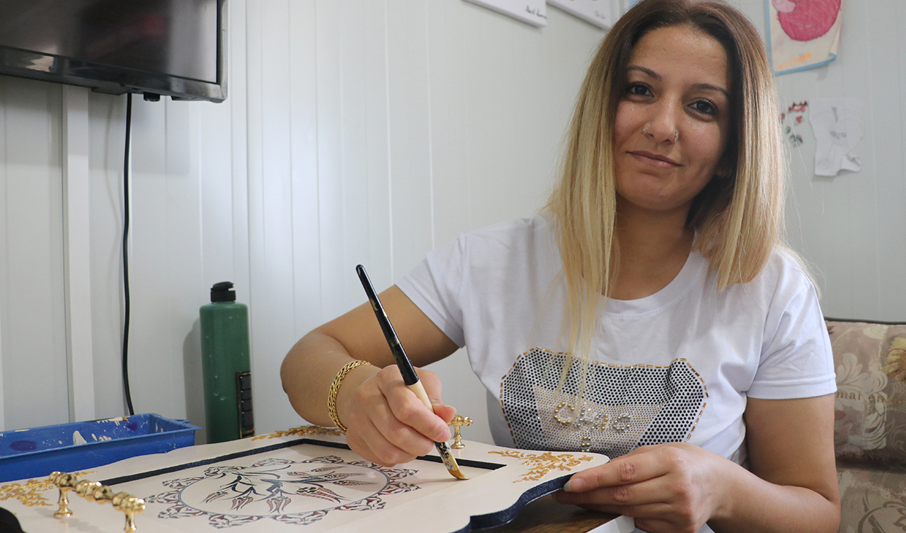 Kendi çalışmalarını yapmaya başlayan kadınlar, konteyner kentte renklendirdikleri ahşap tepsi, takı kutuları, sehpa gibi ürünleri satarak aile bütçesine katkıda bulunuyor.