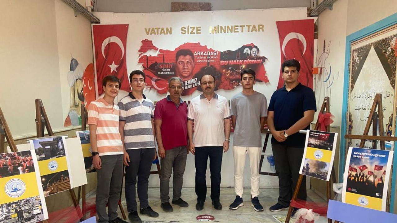 Şehit Mehmet Lütfi Gülşen Anadolu İmam Hatip Lisesi Yaz Okulu etkinlikleri kurs programında öğrencilerle birlikte hazırlanan 15 Temmuz Milli Birlik ve Dayanışma Günü fotoğraf sergisinin açılışını Ak Parti İl Başkan Yardımcısı Adnan Bahçeci ile gerçekleştirdi.