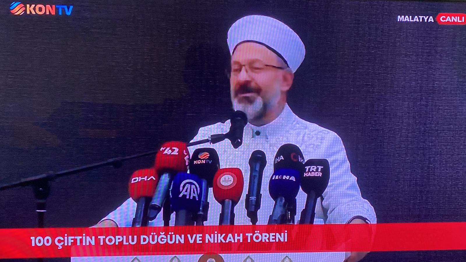 'Yuvalar Kuruyoruz' projesi kapsamında Diyanet İşleri Başkanı Ali Erbaş'ın katılımıyla ve Konya İl Müftüsü Ali Öge'nin de katkılarıyla Malatya düzenlenen toplu nikah töreninde 100 depremzede çift dünya evine girdi.