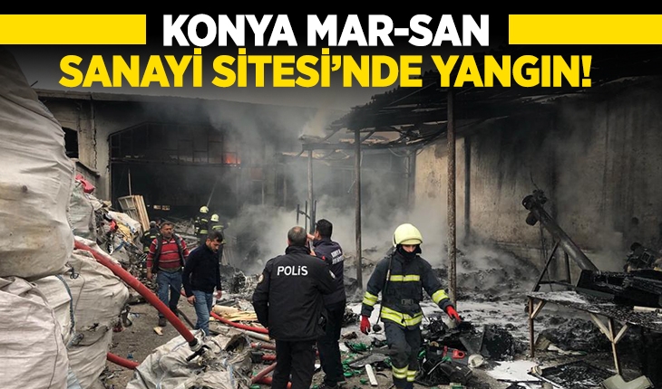 Konya'nın Merkez Karatay ilçesi Hacı Yusuf Mescit Mahallesi'ndeki Mar-San Sanayi Sitesi'ndeki plastik geri dönüşüm işletmesinde henüz belirlenemeyen nedenle yangın çıktı.