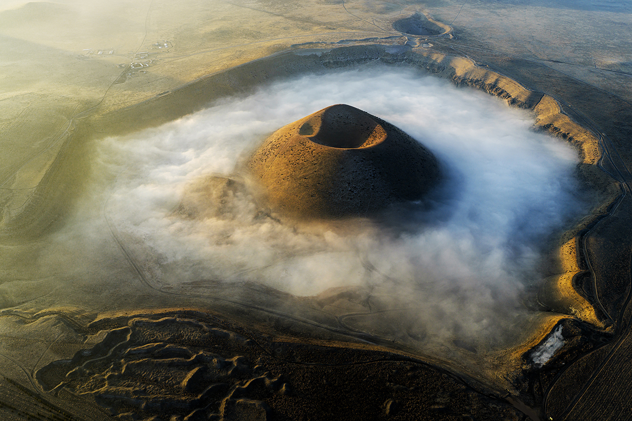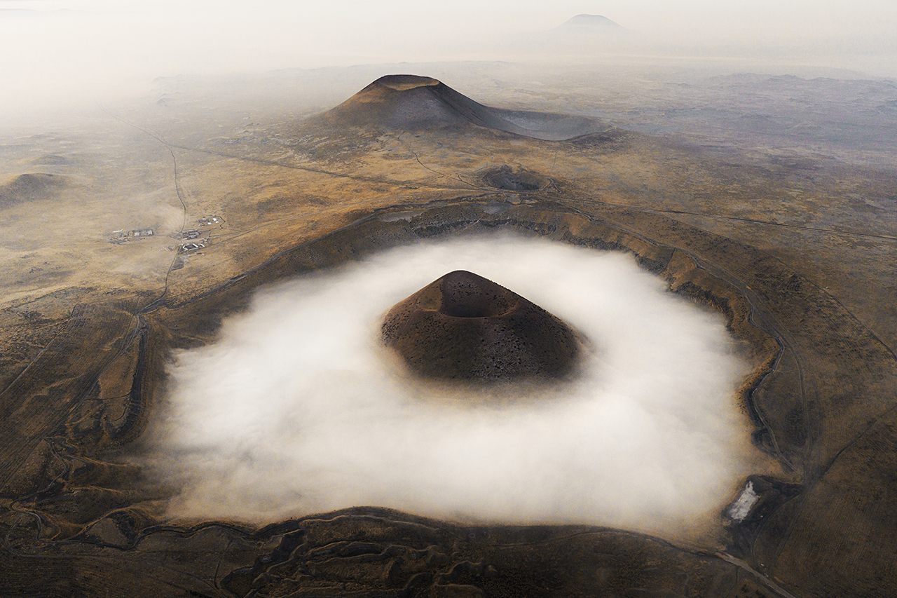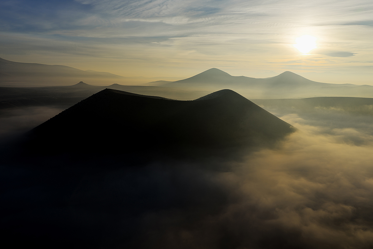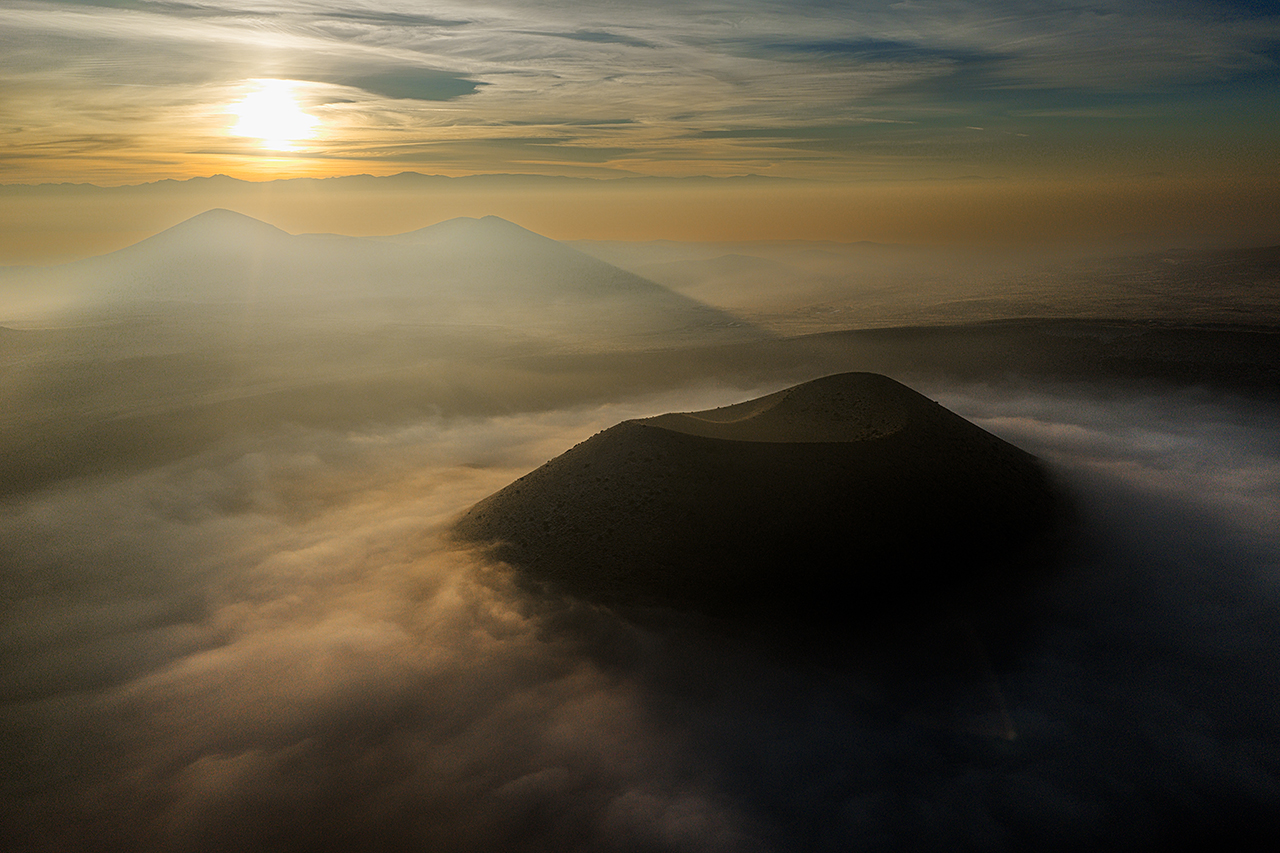 Volkanik yapısıyla dikkat çeken Meke Gölü’nde sisin zaman zaman yoğunlaşarak dağılması, göl ve çevresindeki krater yapısını farklı açılardan ortaya çıkardı.