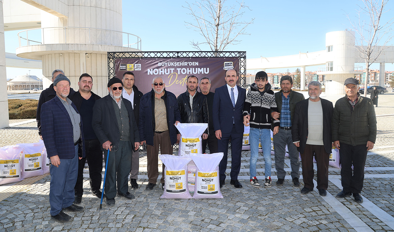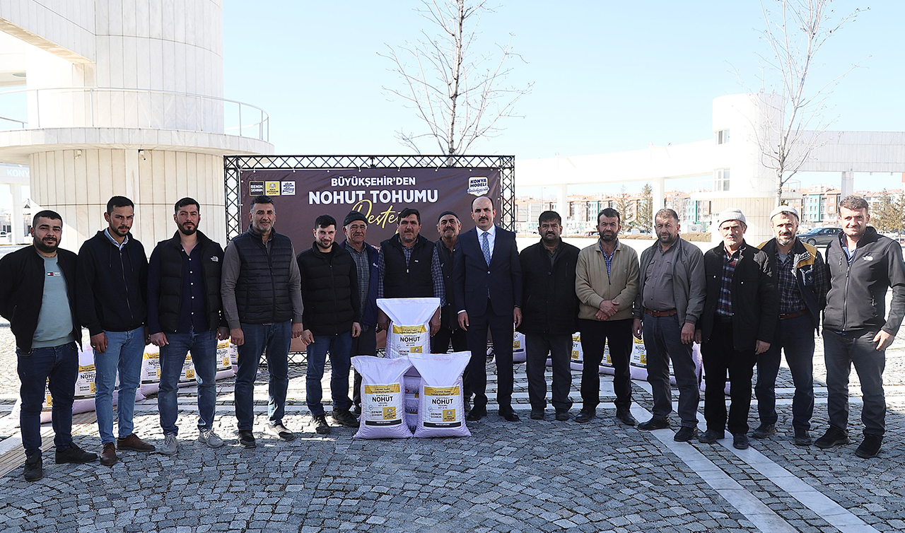 Konya Büyükşehir Belediyesi, “Kuru Tarım Alanlarında Nohut Yetiştiriciliğinin Yaygınlaştırılması Projesi” kapsamında tarımsal üretimi artırmak amacıyla Konya genelinde çiftçilere yüzde 50 hibeli 108 bin 675 kilogram sertifikalı nohut tohumu desteğinde bulundu. Nohut dağıtım programına katılarak çiftçilerle bir araya gelen Konya Büyükşehir Belediye Başkanı Uğur İbrahim Altay, “Konya üretmeye, biz de desteklemeye devam edeceğiz” dedi.