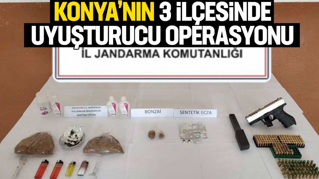 Konya İl Jandarma Komutanlığı ekiplerince Çumra, Akşehir ve Karatay ilçelerinde çeşitli adreslere yönelik uyuşturucu operasyonu yapıldı.