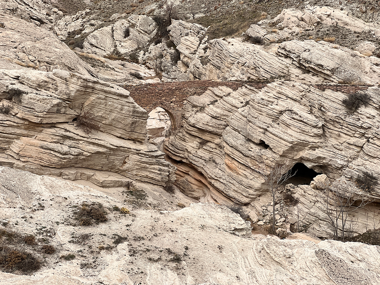 Dar bir vadide bulunması, dar ve yüksek oluşu nedeniyle günümüzde kullanılmayan köprünün, ürkütücü yapısı dikkat çekiyor.