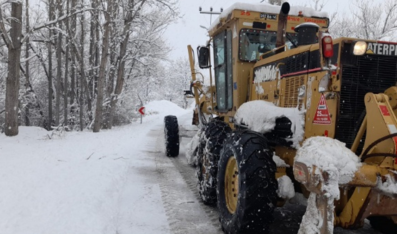 İlçelerde yoğun kar yağışı nedeniyle kapanan yolların açılması için ekipler çeşitli güzergâhlarda çalışmalarını devam ettiriyor.