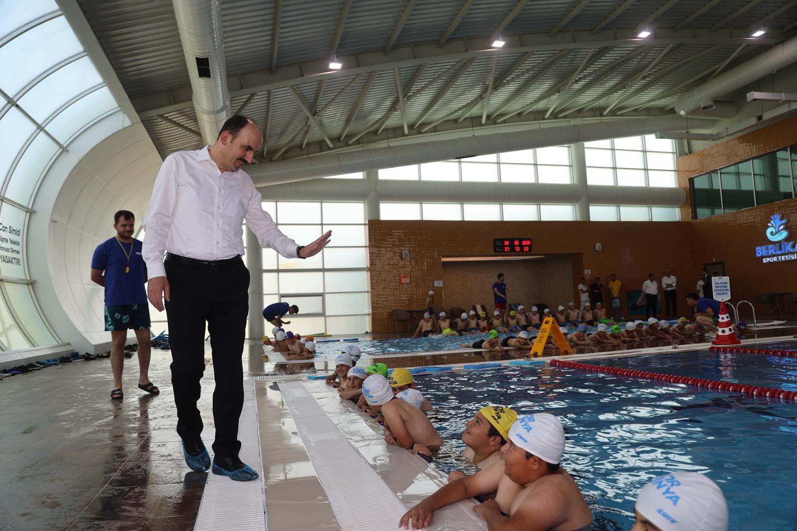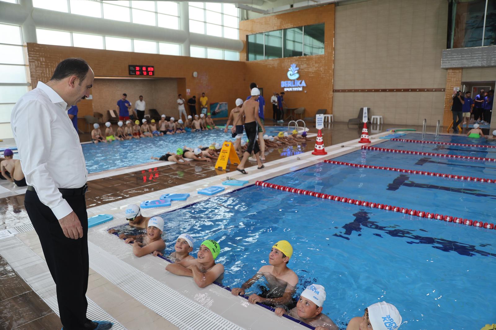 Projenin yaz tatilinde merkeze bağlı taşra mahallerde de hayata geçirildiğini belirten Başkan Altay, “Yaz tatilini fırsat bilerek Meram, Karatay ve Selçuklu ilçemizin eski beldelerindeki 7-14 yaş arasında 750 çocuğumuza Berlika Yüzme Havuzu’nda eğitim veriyoruz. İnşallah program tamamlandığında altıncı haftanın sonunda çocuklarımız yüzme öğrenmiş olacak. Beldeden ücretsiz şekilde servislerimizle getirilen çocuklarımızın ekipmanları belediyemiz tarafından sağlanıyor. Çocuklarımız, burada eğlenceli bir ortamda hem yazın keyfini çıkarıyor hem de temel yüzme eğitimlerini kız ve erkek ayrı havuzlarda alıyor. İnşallah çocuklarımız için eğlenceli bir yaz geçmiş olacak. Hayırlı olsun” değerlendirmesinde bulundu.