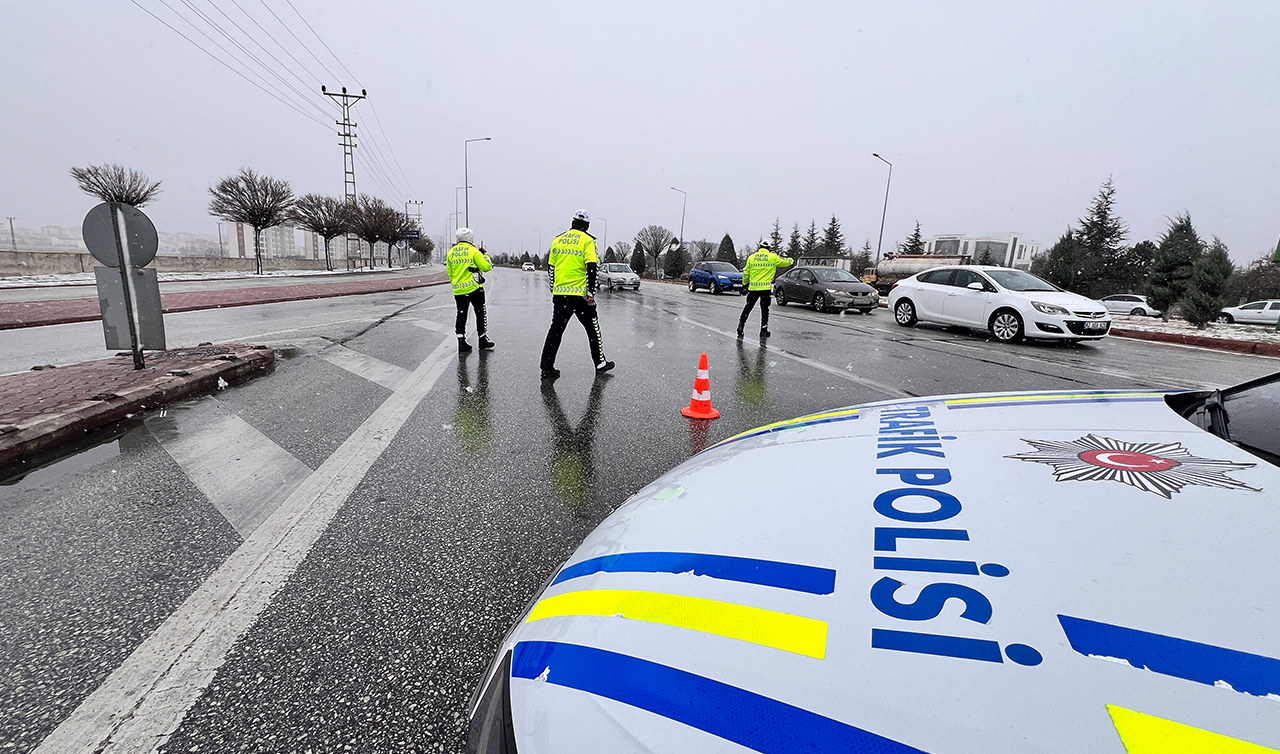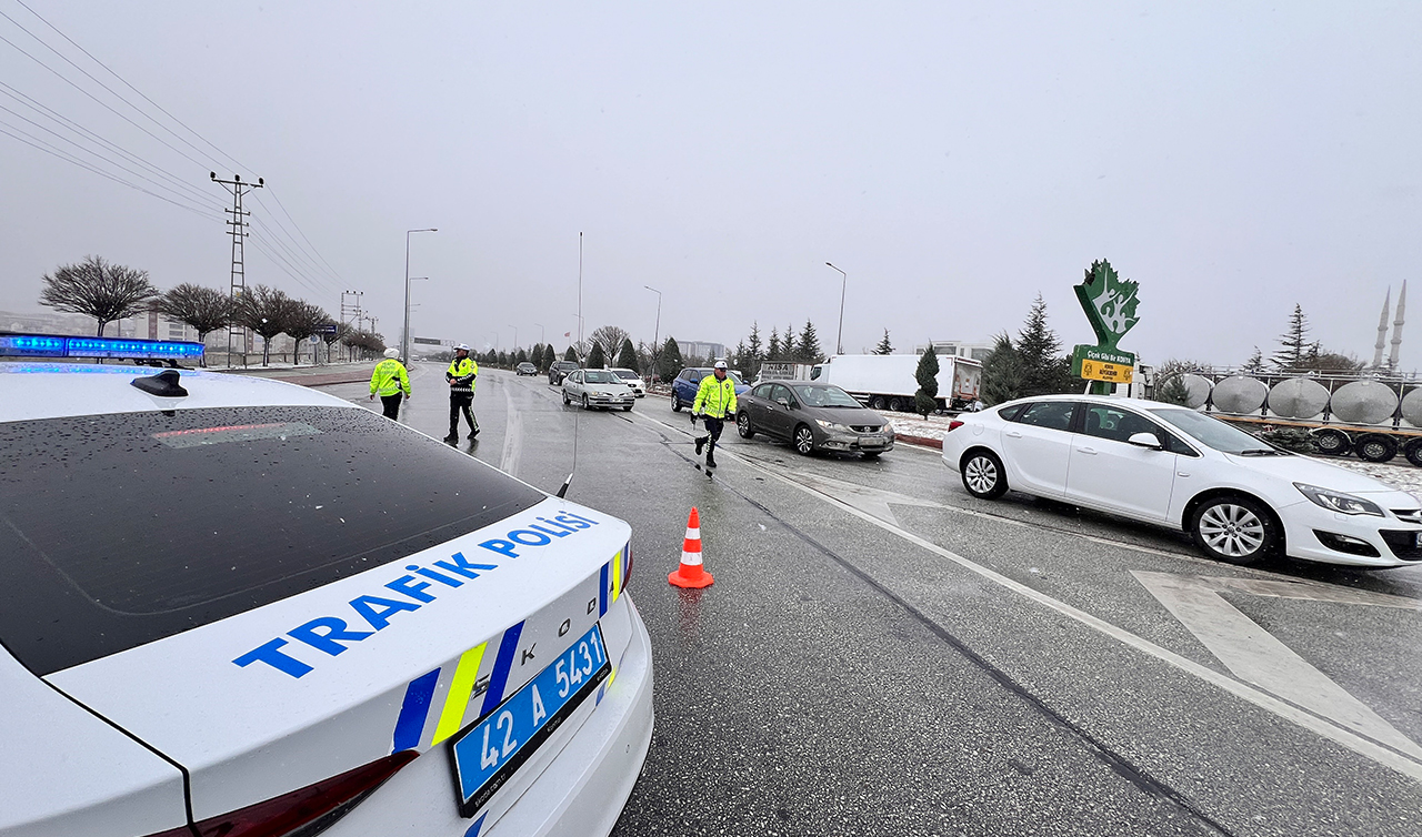 Konya’da sabah saatlerinde başlayan kar yağışı bazı şehirlerarası kara yollarında yer yer tipi şeklinde etkili olurken, polis ekipleri de tedbirlerini aldı.