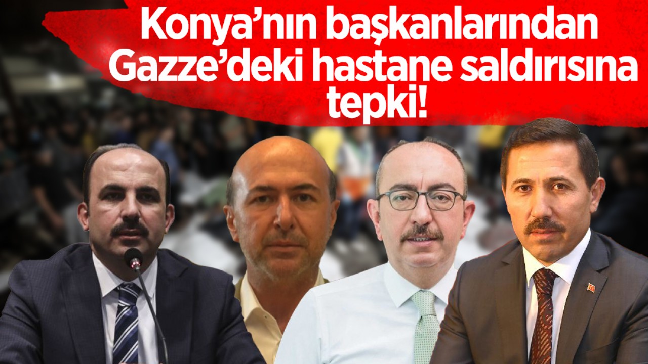 Konya Büyükşehir Belediye Başkanı Uğur İbrahim Altay, Selçuklu Belediye Başkanı Ahmet Pekyatırmacı, Meram Belediye Başkanı Mustafa Kavuş ve Karatay Belediye Başkanı Hasan Kılca İsrail'in Gazze'deki hastaneye saldırılarına tepki verdi.