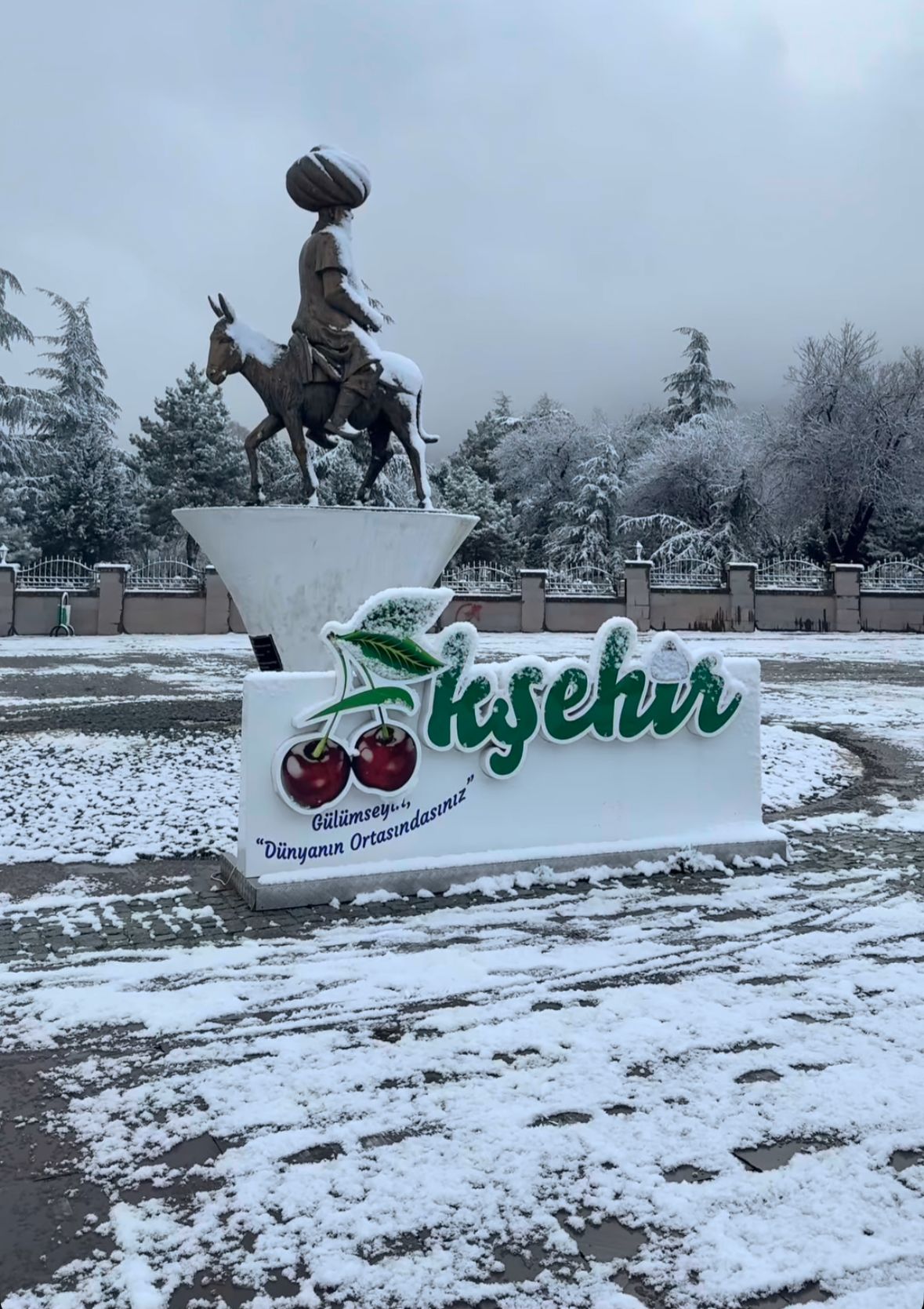 Konya'nın Akşehir ilçesinde sabah saatlerinde etkili olan kar yağışıyla ilçe beyaza bürünürken, ortaya çıkan kartpostallık manzaralar vatandaşlar tarafından cep telefonlarıyla görüntülendi.