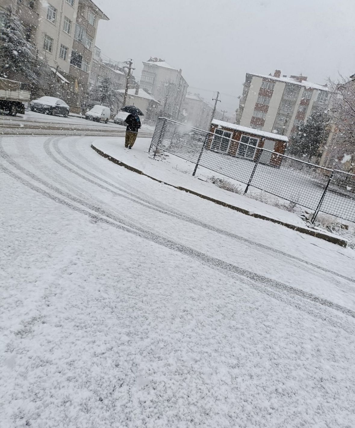 Konya’nın Akşehir ilçesi, sabah saatlerinde başlayan kar yağışıyla birlikte beyaza büründü.