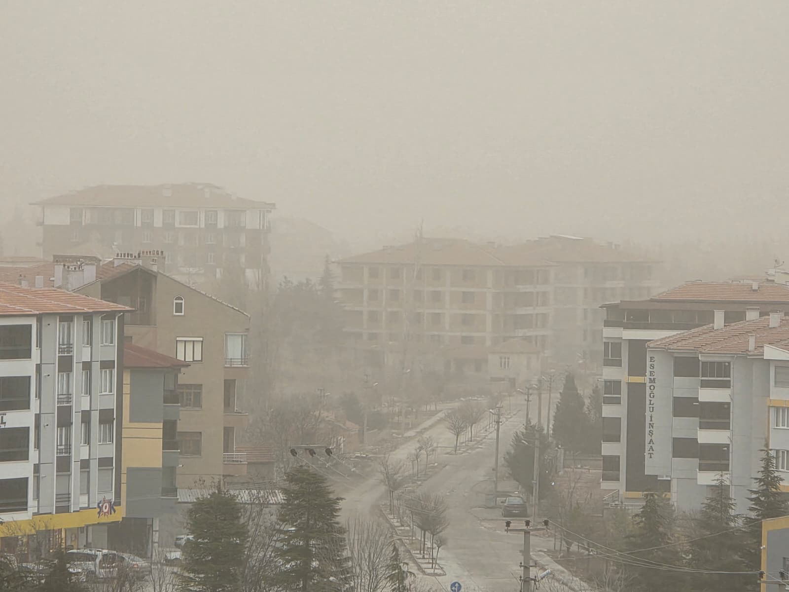 Aniden bastıran şiddetli rüzgarla birlikte ilçe genelini kaplayan toz bulutu, görüş mesafesinin ciddi şekilde düşmesine yol açtı.