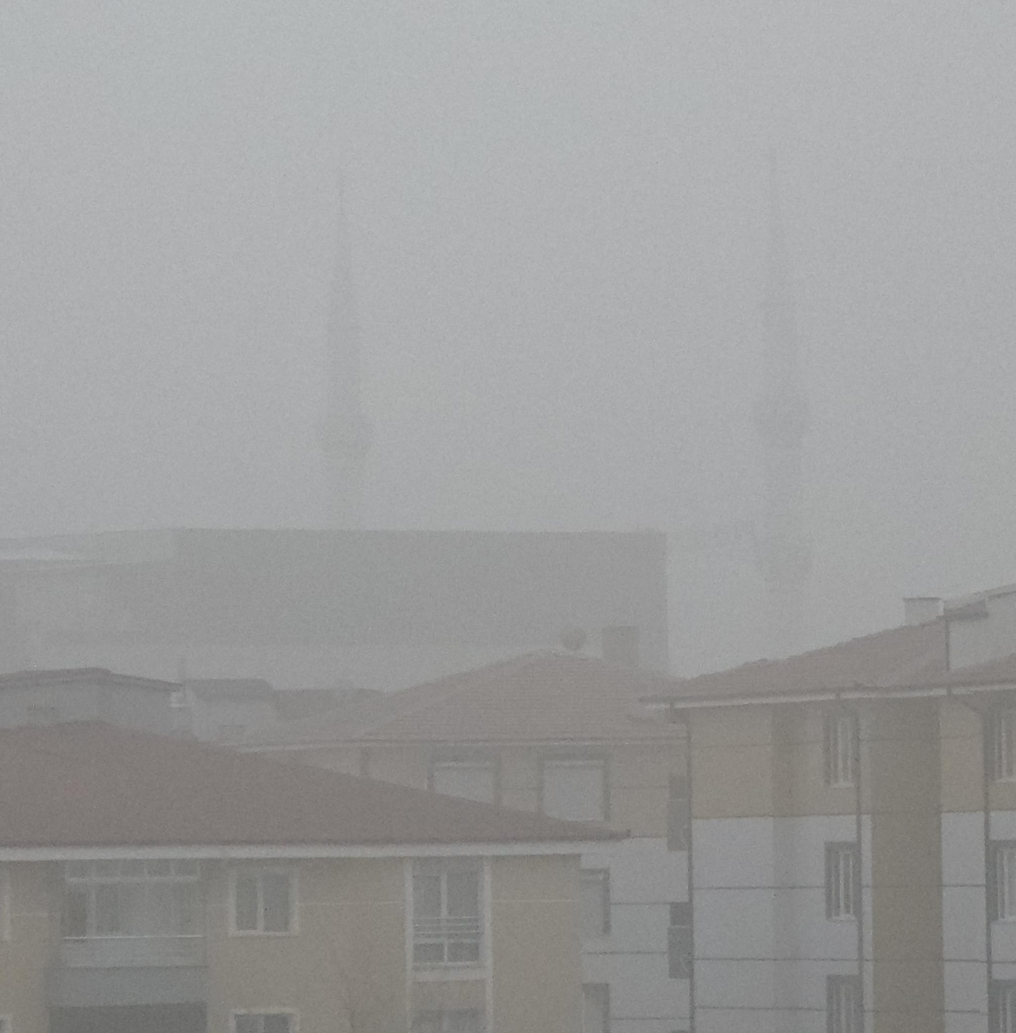Konya'nın bir ilçesinde toz taşınımı ve fırtına nedeniyle görüş mesafesi düştü.