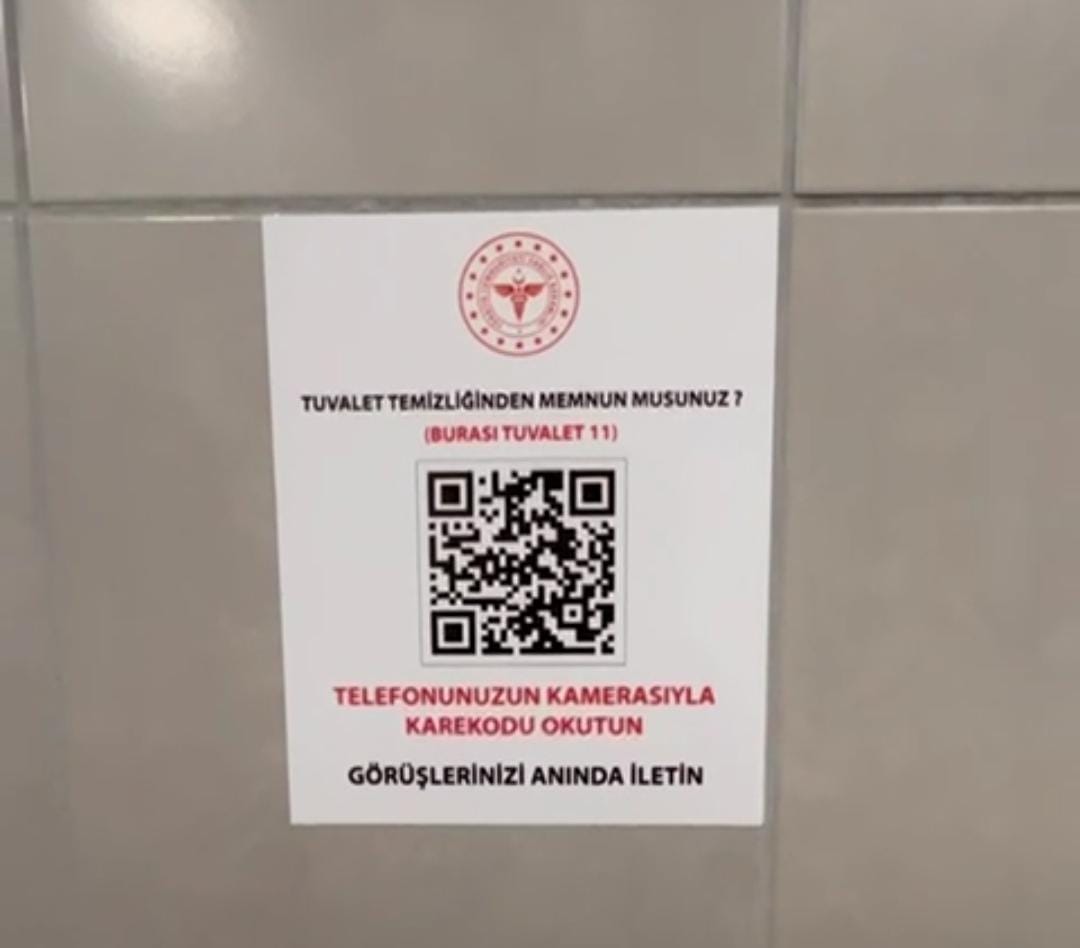 Hastane yönetimi tarafından başlatılan “Hijyen Takip Sistemi” kapsamında tuvaletlere yerleştirilen karekodlar (QR Kod) sayesinde vatandaşlar, gördükleri eksiklikleri ya da memnuniyetlerini anında iletebilecek.
