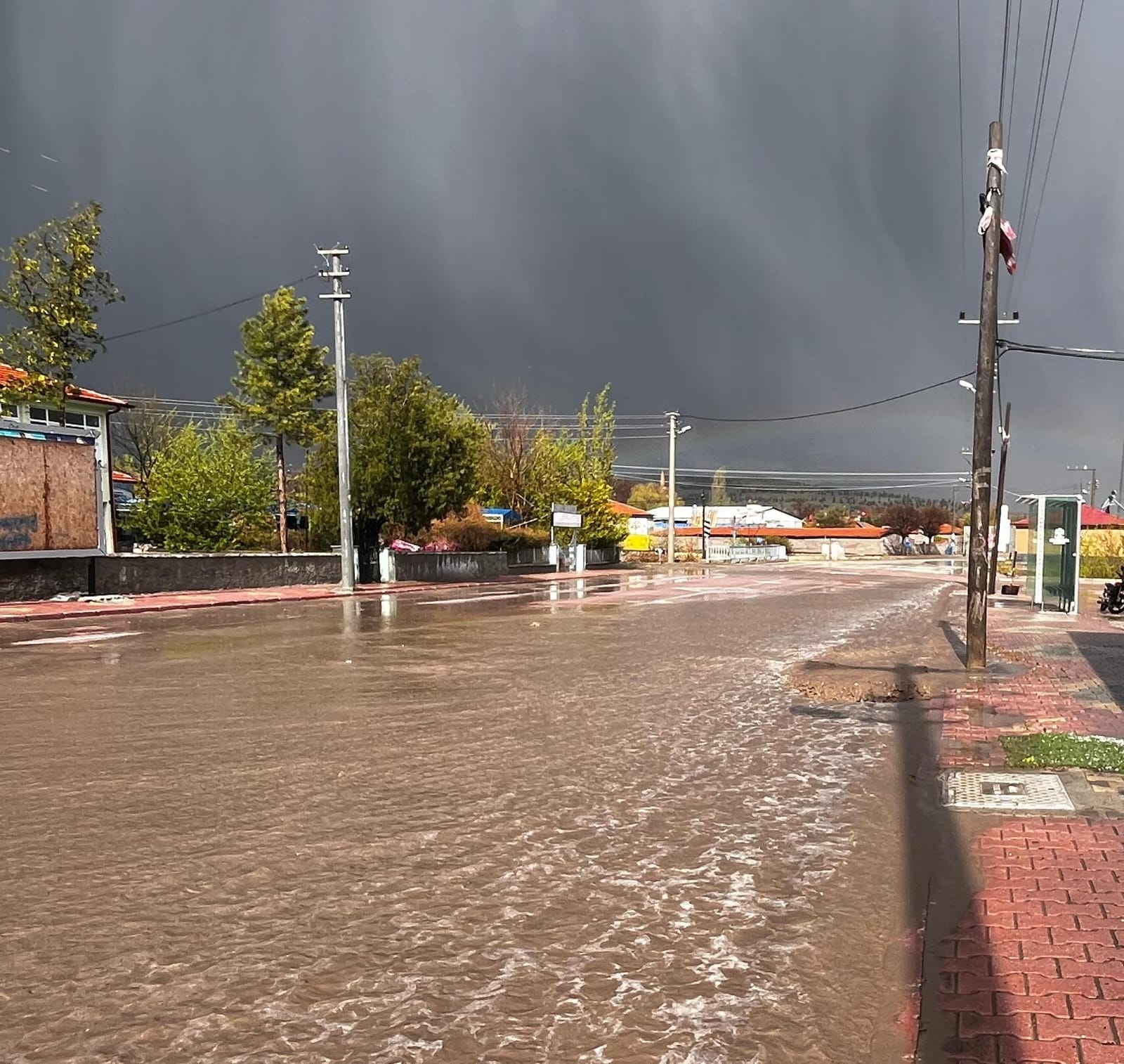 Şiddetli dolu ve yağış dolayısıyla cadde, sokak ve yollarda sel meydana geldi.