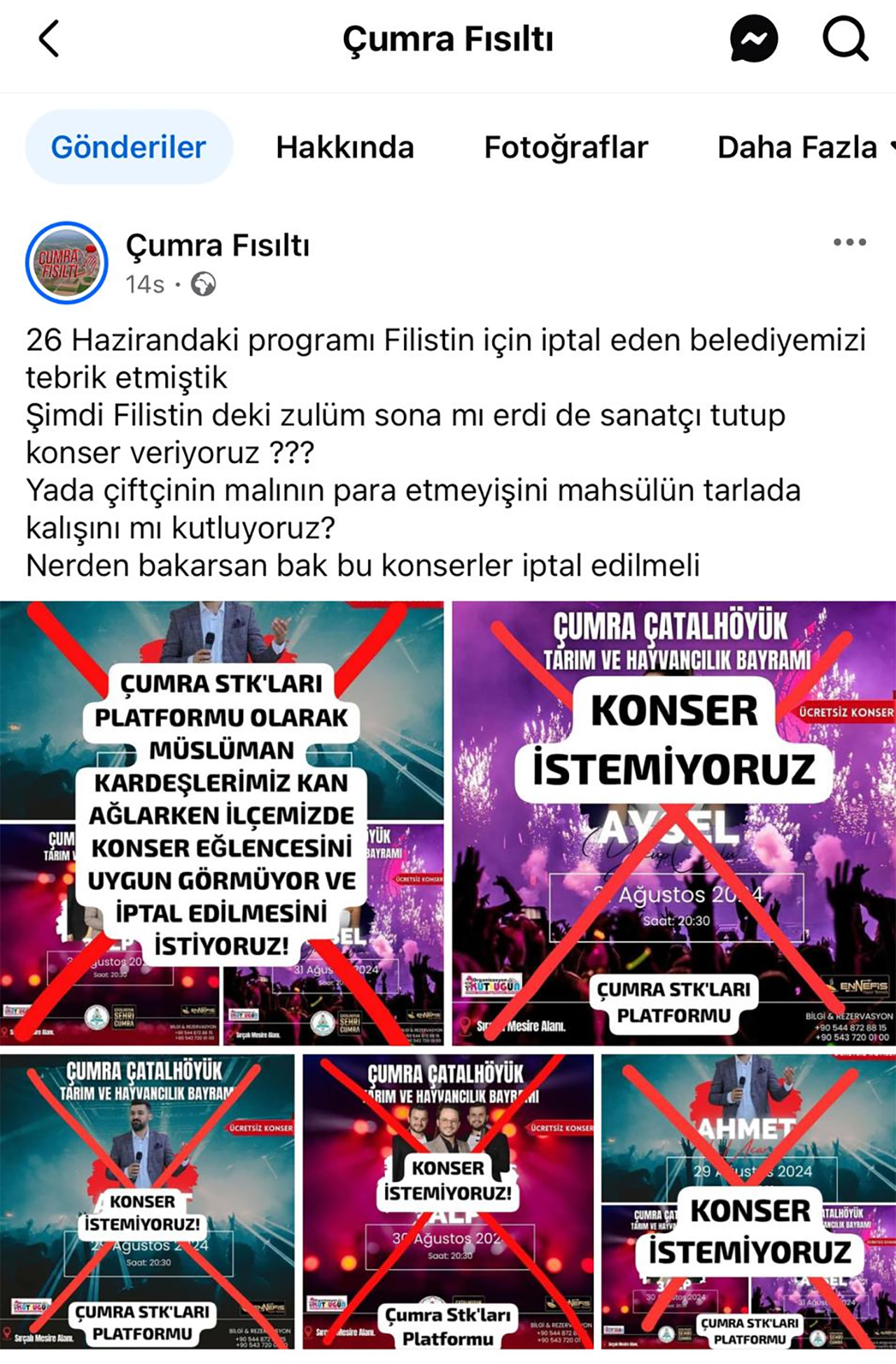 Konya’nın Çumra ilçesinde YRP’li (Yeniden Refah Partisi) belediye tarafından düzenlenecek “Çatalhöyük Tarım ve Hayvancılık Bayramı” etkinliği kapsamında verilecek olan konserler ilçe halkı tarafından tepkiyle karşılandı.