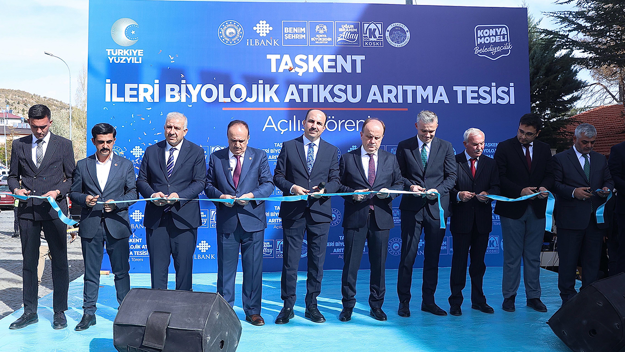 Konuşmaların ardından Konya Büyükşehir Belediyesi KOSKİ Genel Müdürlüğü tarafından yapımı tamamlanan Taşkent İleri Biyolojik Atık Su Arıtma Tesisi’nin açılışı dualarla yapıldı.