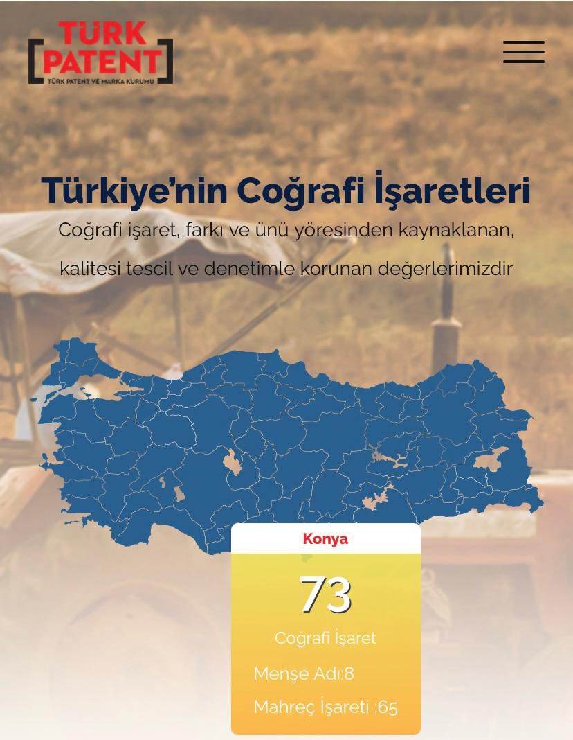 Türk Patent ve Marka Kurumu tarafından Konya’nın 72 ürünü tescil edilerek coğrafi işaret aldı. Tescili yapılan ürünler arasında; “Konya Etliekmek”, “Konya Etli Düğün Pilavı”, “Konya Peynir Şekeri”, “Konya Zerdesi”, “Konya İrmik Helvası”, tescilli yemeklerimizden “Konya Bamya Çorbası”, şeflerin özel yemek tariflerinden "Konya Yağ Somunu" gibi bilindik lezzetlerin yanında farklı lezzetlerde yer alıyor.