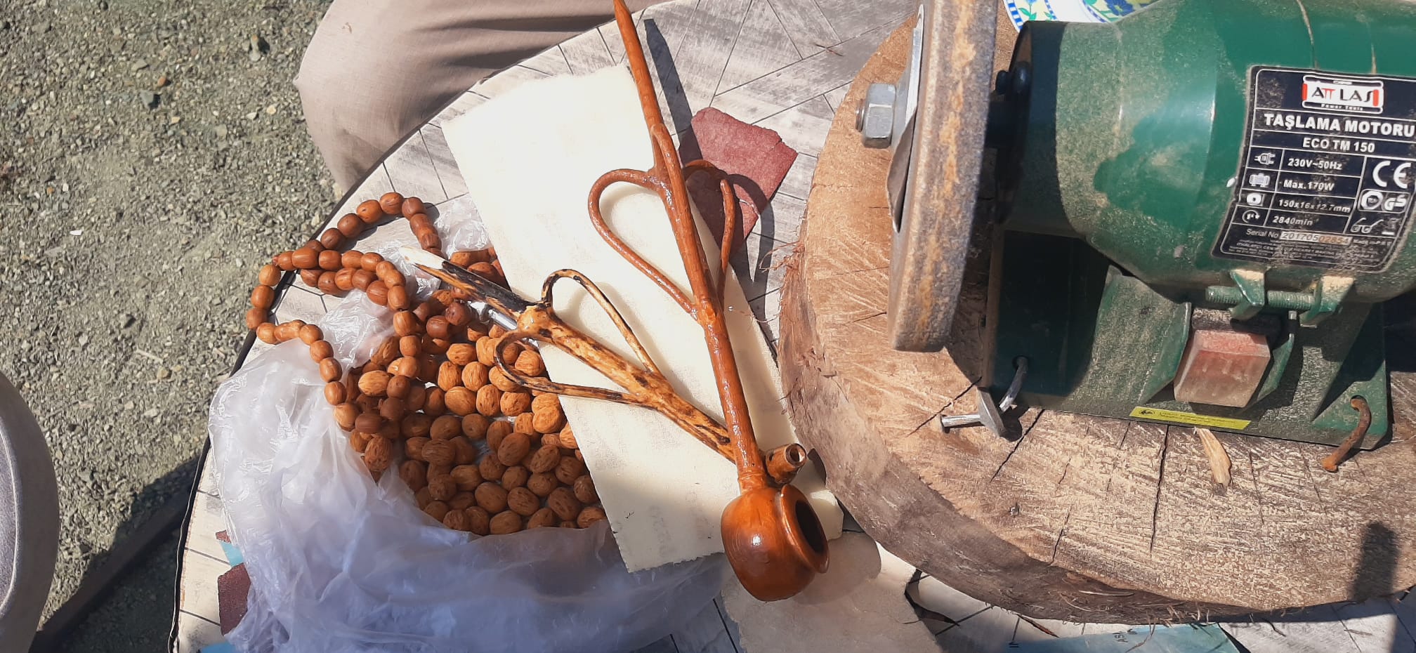 Tespih, kaşık ve dekoratif objelerin üretimi artık sadece bir hobi değil. Sağlam, ürünlerine gelen talepler üzerine sipariş almaya ve satış yapmaya da başlamış. Ancak hala vurguladığı şey aynı: