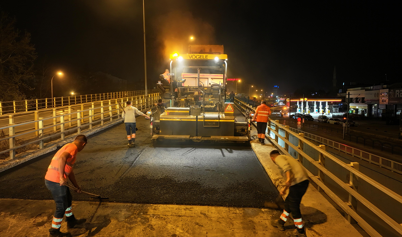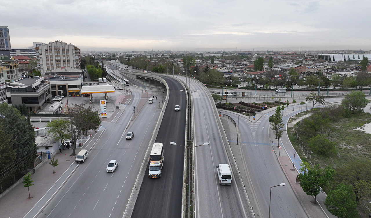 Konya Büyükşehir Belediyesi ekipleri Koyuncu Köprülü Kavşağı’nda Meram istikametine gidişteki asfalt yenileme çalışmalarını tamamlarken, diğer kısımdaki çalışmalara gece saatlerinde devam edecek.
