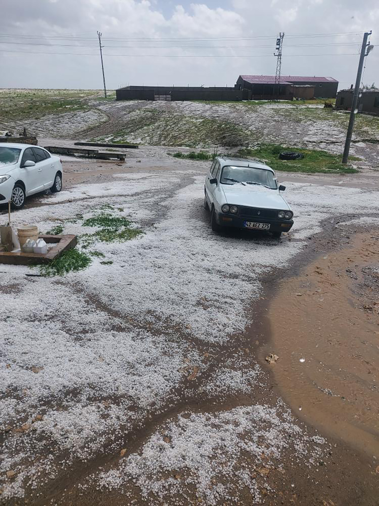 Konya’nın Yunak, Altınekin ve Cihanbeyli ilçelerinde etkili olan dolu yağışı etrafı beyaza bürüdü. Kısa süreli yağış, vatandaşların cep telefonu kamerasına yansıdı.