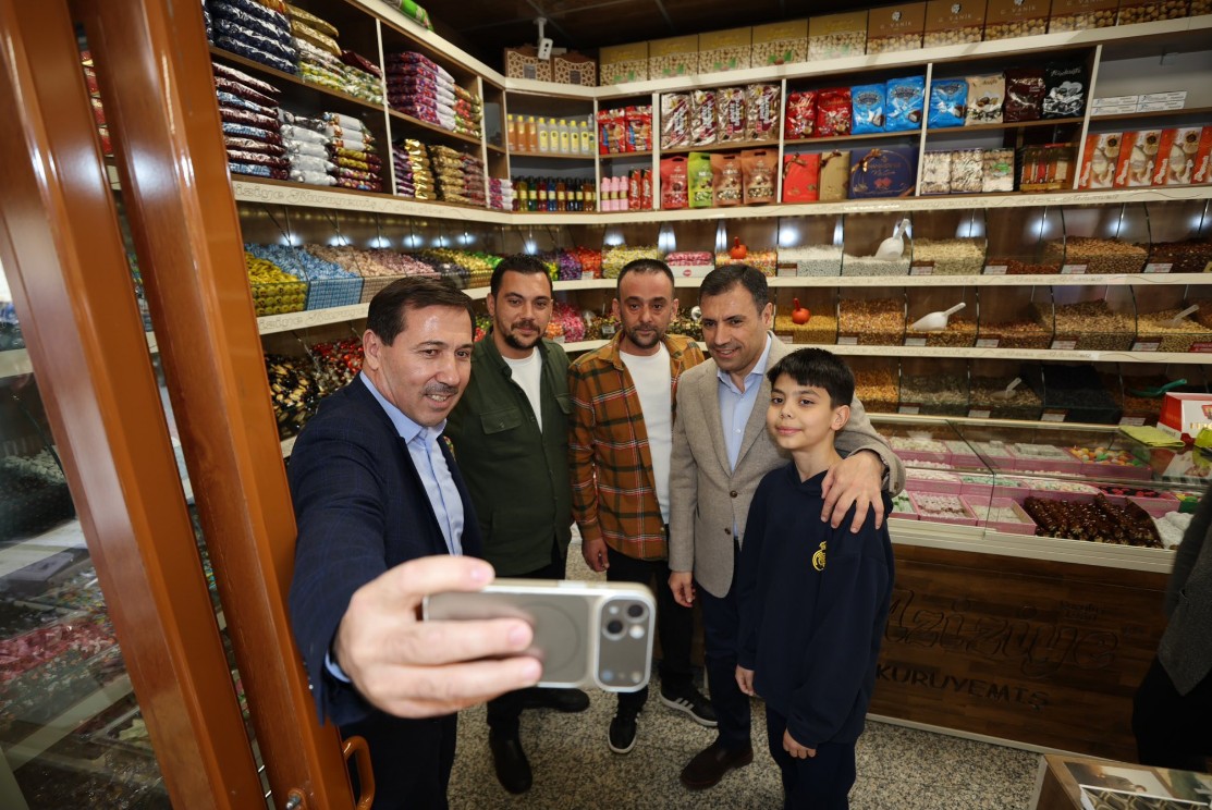 Program kapsamında esnafa bereketli kazançlar dileyen heyet, vatandaşlarla da hatıra fotoğrafı çektirdi. (Ali Rıza Karabulut)
