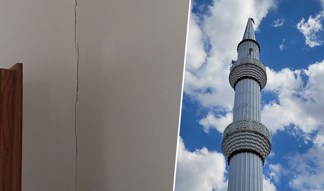 Öte yandan bazı yapılarda ufak çaplı hasar ve çatlaklar meydana geldi. Deprem sonrası meydana gelen zarar ise kameraya böyle yansıdı. Görüntülerde duvarlarda oluşan çatlak ve bir caminin kubbe alemindeki hasar yer aldı.