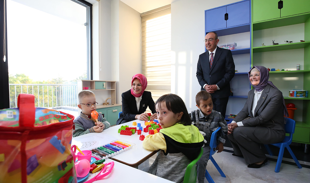 DOSD MERAM DOWN SENDROMLULARIN HAYATLARINA DOKUNUYOR Öte yandan merkezde 6 bireysel eğitim sınıfı ve 2 grup eğitim sınıfı bulunuyor. Bireysel sınıflarda haftada 240 saat eğitim, grup sınıflarında ise haftada 192 saat eğitim imkanı sağlanan merkezde, spor atölyesi, fizik tedavi merkezi ile konaklama alanları bulunuyor. Kapalı ve açık alanlarda uzmanların özgün programlarıyla sunulan eğitimler sayesinde özel çocukların dil ve motor becerilerinin geliştirilmesi hedefleniyor. Merkezde ayrıca verilen seminerlerle aileler bilinçlendiriliyor.