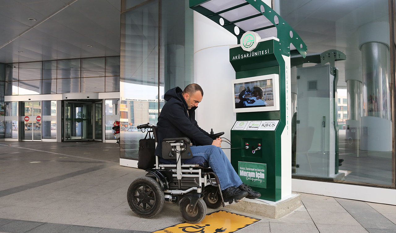 AKÜLÜ ŞARJ İSTASYONLARI İLE MERAM’DA ENGELLİLER ARTIK YOLDA KALMIYOR
