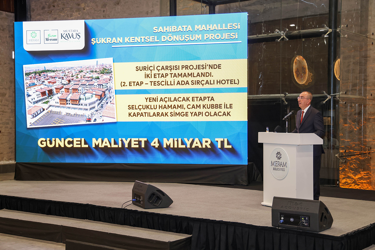 Toplantıda konuşan Meram Belediye Başkanı Mustafa Kavuş ise, görevde bulunduğu son yedi yılın hizmet yolculuğunu teşkilat mensuplarıyla paylaştı. İkinci kez belediye başkanlığı görevine seçilmesinde teşkilatın gayreti ve desteğinin büyük rol oynadığını vurgulayan Kavuş, “Tevazu, samimiyet ve gayret ilkemizden ayrılmadan Meram’a hizmet etmeye devam ediyoruz.” dedi. Başkan Kavuş, özellikle kentsel dönüşüm ve tarihî miras yatırımlarına dikkat çekti. Sahipbata Mahallesi’ndeki Şükran Kentsel Dönüşüm Projesi’nde iki etabın tamamlandığını, üçüncü etabın ise sona yaklaştığını belirten Kavuş, kazılar sırasında gün yüzüne çıkarılan Selçuklu hamam kalıntısının jeodezik cam kubbe ile kapatılarak Konya’nın simge yapılarından biri haline getirileceğini söyledi. Ayrıca Lystra Antik Kenti kazılarında kentin ana kilisesi olduğu düşünülen yapının gün yüzüne çıkarılmasının Konya tarihi açısından büyük önem taşıdığını vurguladı.