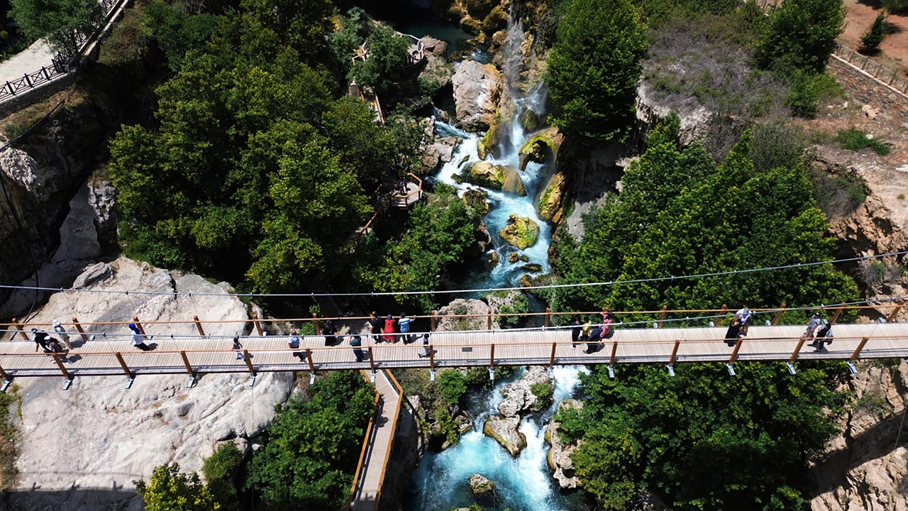 Asma köprüden geçerek kanyonun eşsiz manzarasını seyredebilirsiniz.