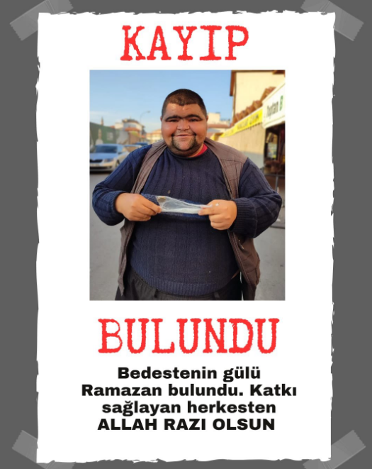Ramazan isimli engelli vatandaşın kayıp duyurusu yapıldı. Sosyal medyadaki duyuruda, "“Bedesten’in gülü Ramazan’dan öğleden beri haber alınamıyormuş. Görenlerin ve duyanların yetkililere müracaat etmeleri rica olunur” denildi.