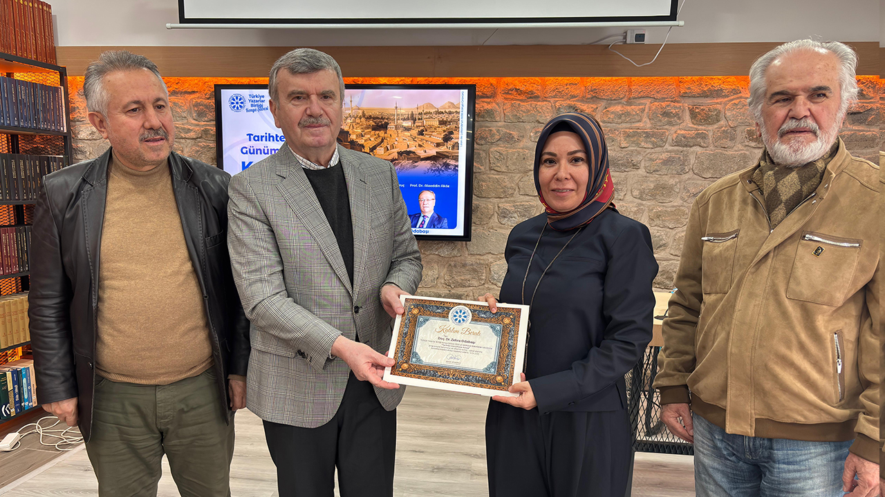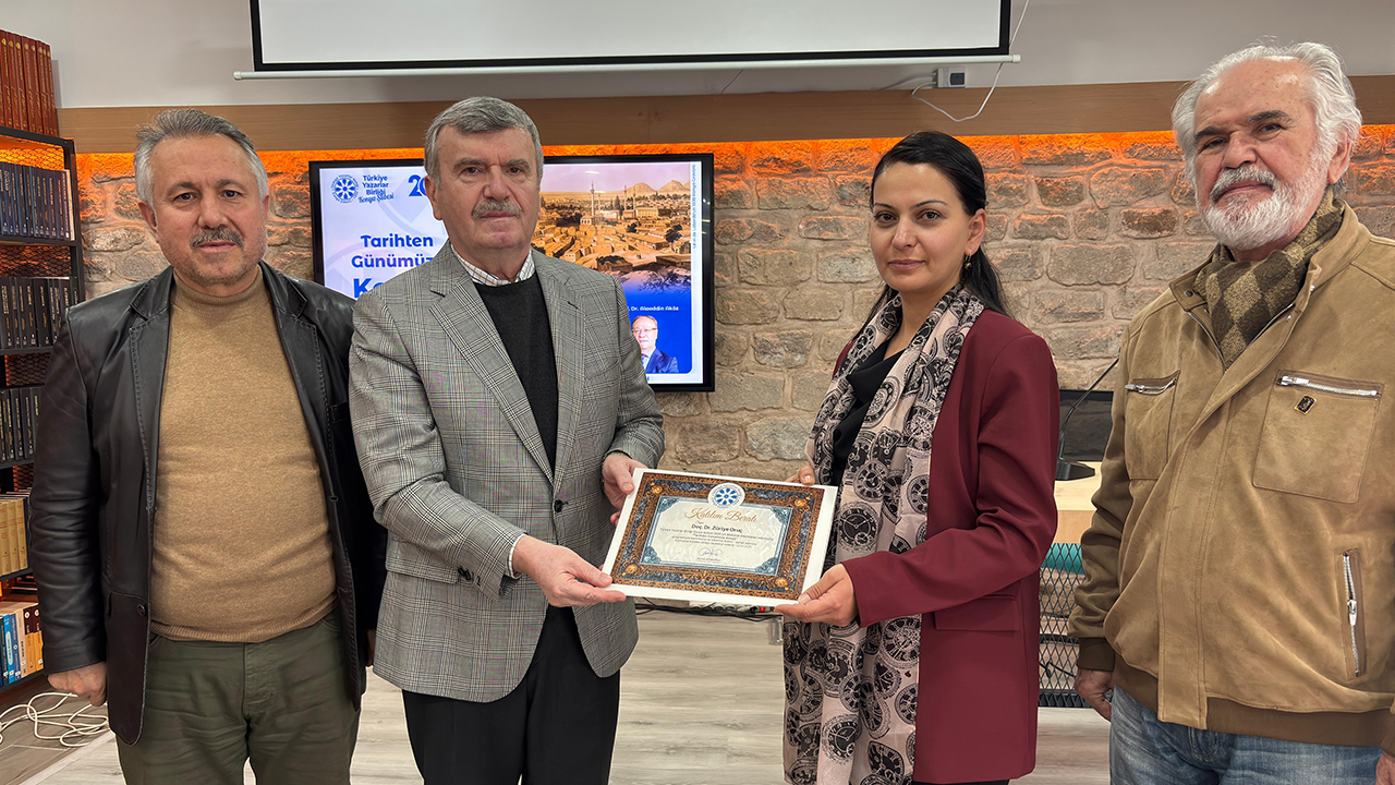 İkinci konuşmacı Doç. Dr. Züriye Oruç, "Selçuklu Başkenti Konya: Bir Medeniyetin Kalbi" başlıklı sunumuyla Selçuklu döneminde Konya'nın siyasi, ekonomik ve kültürel bir merkez olarak yükselişini detaylarıyla aktardı. Doç. Dr. Oruç, "Konya, Selçuklu Devleti'nin başkenti olarak altın çağını yaşamış, görkemli yapılarla donatılmış, ilim ve sanatın merkezi haline gelmiştir. Sultan Alaeddin Keykubat'ın şehre yaptığı katkılar, Konya'yı adeta bir inciye dönüştürmüştür," şeklinde konuştu. Selçuklu dönemindeki mimari eserlere, kervansaraylara, medreselere ve sosyal hayata dair önemli bilgiler veren Doç. Dr. Oruç, şehrin o dönemdeki canlı ticaret hayatına ve kültürel etkileşimine de değindi. Haçlı Seferleri ve Moğol istilalarının Konya üzerindeki etkilerini de değerlendiren Doç. Dr. Oruç, "Konya, zorlu süreçlerden geçse de her zaman yeniden ayağa kalkmayı başarmış ve Anadolu'nun önemli bir merkezi olma özelliğini korumuştur," ifadelerini kullandı.